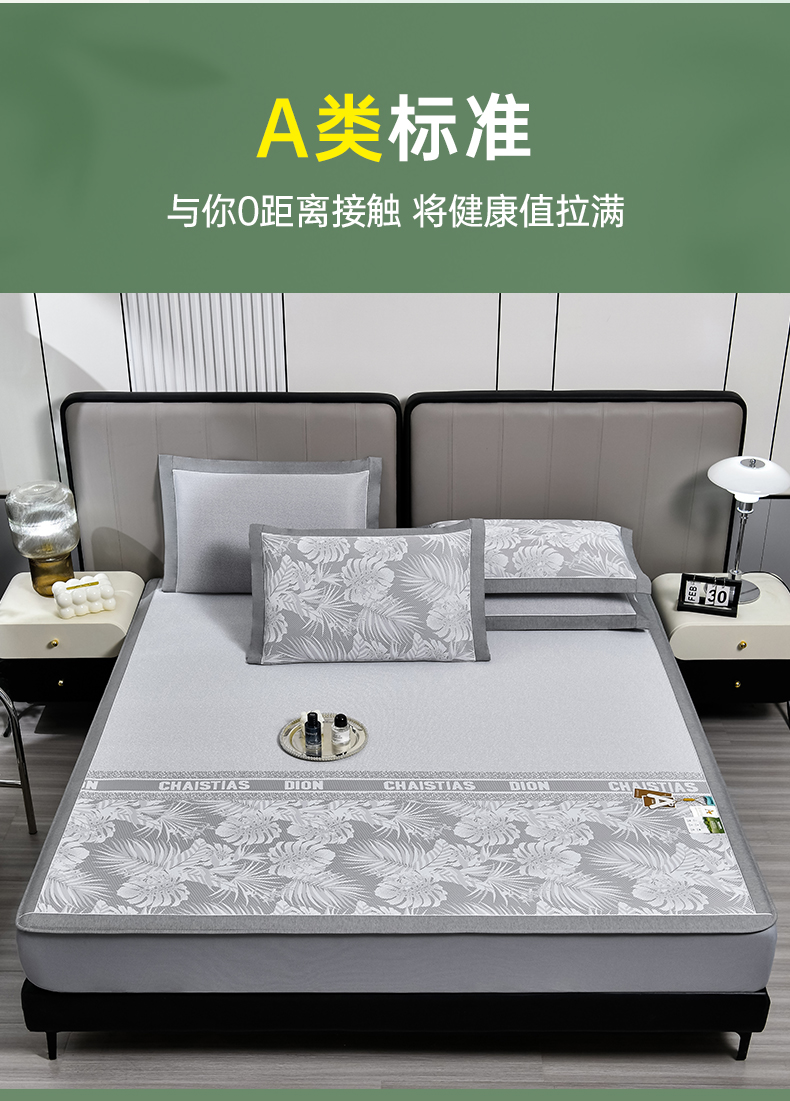 (总)小牛席业 2026新款半定位大提花凉感冰丝席(床笠款)凉席竹席藤席冰藤席乳胶席豆豆席,灰色,粉色,蓝色,香槟