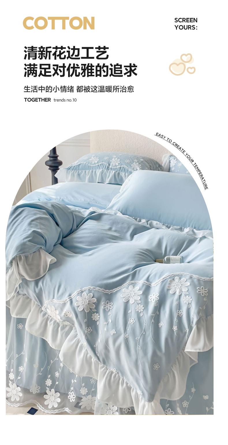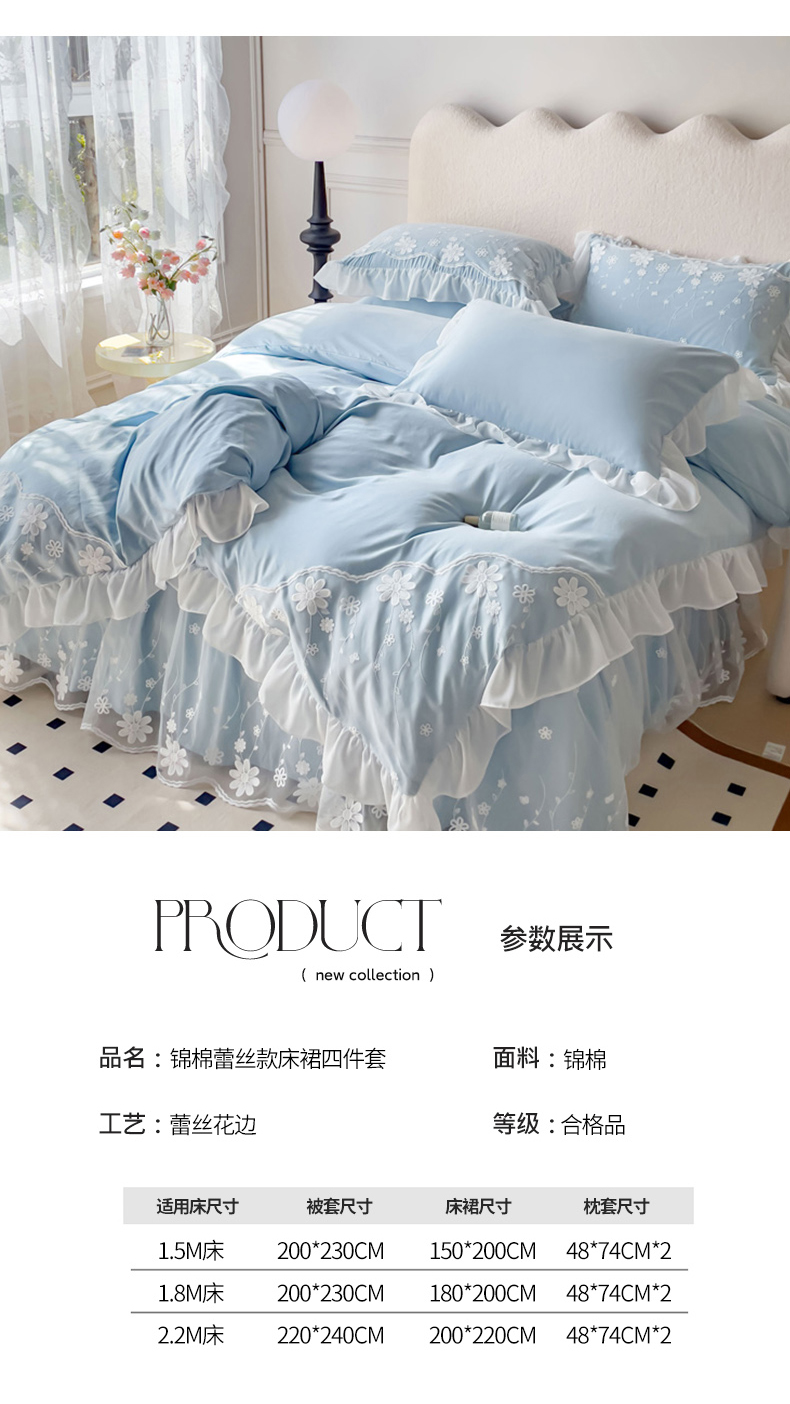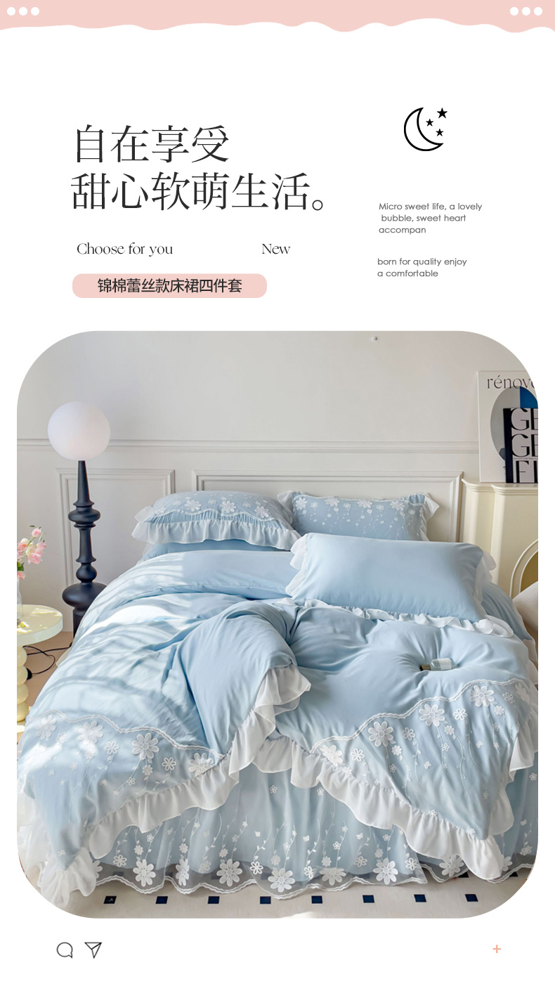 商品名称:睡美人 2026新款锦棉蕾丝款系列韩版公主风床裙四件套-花舞 花舞-青春兰