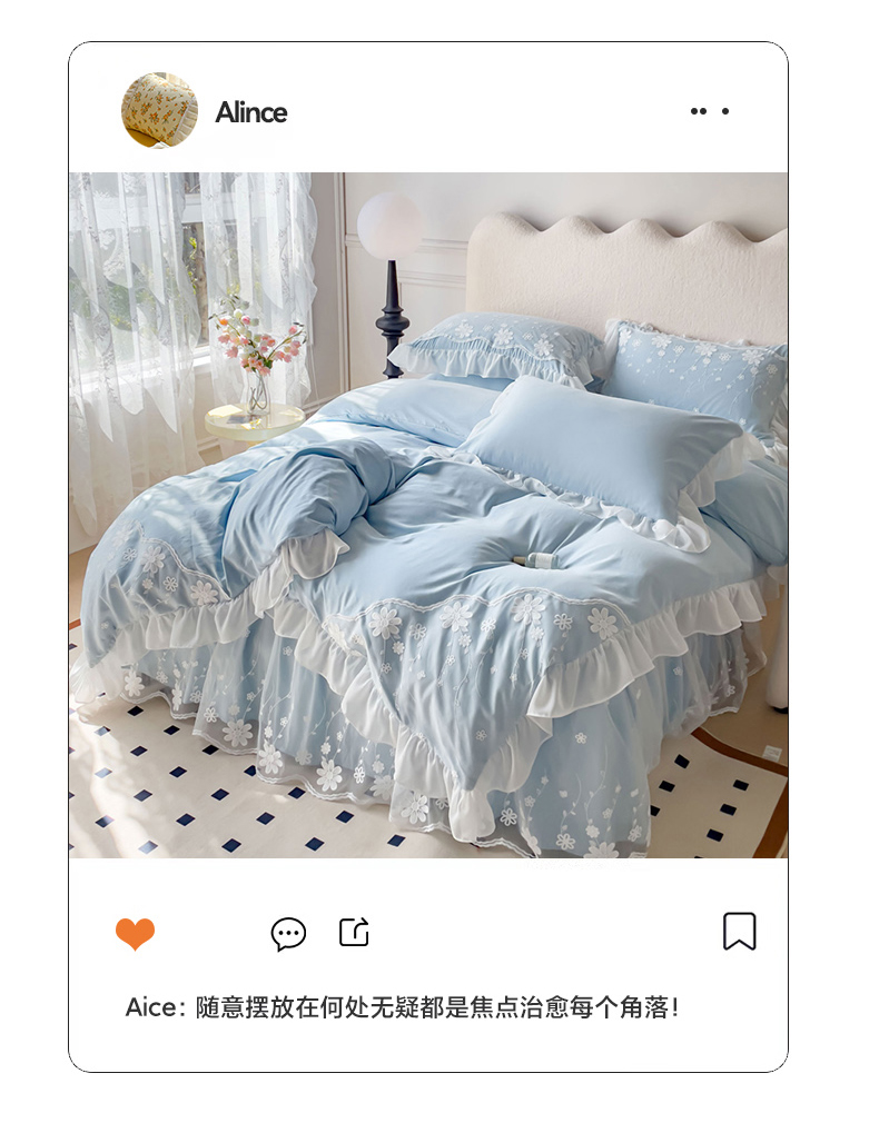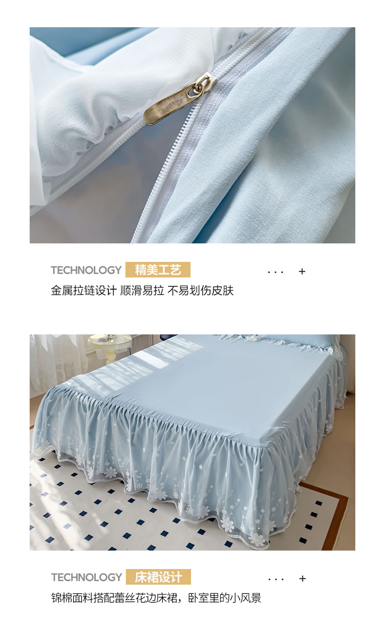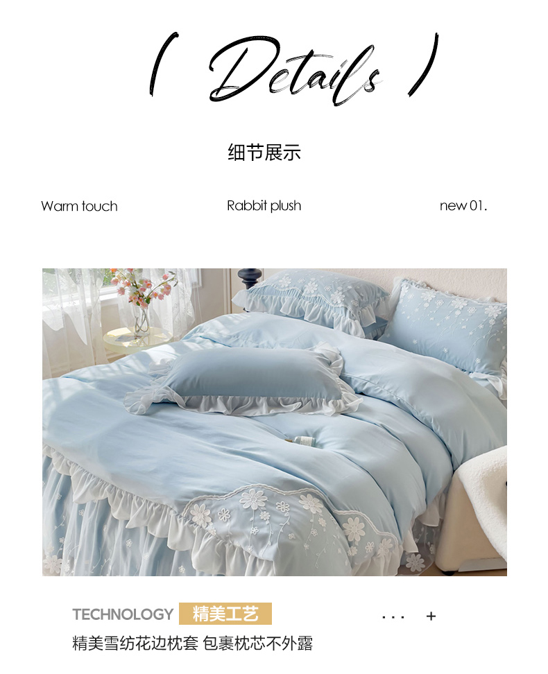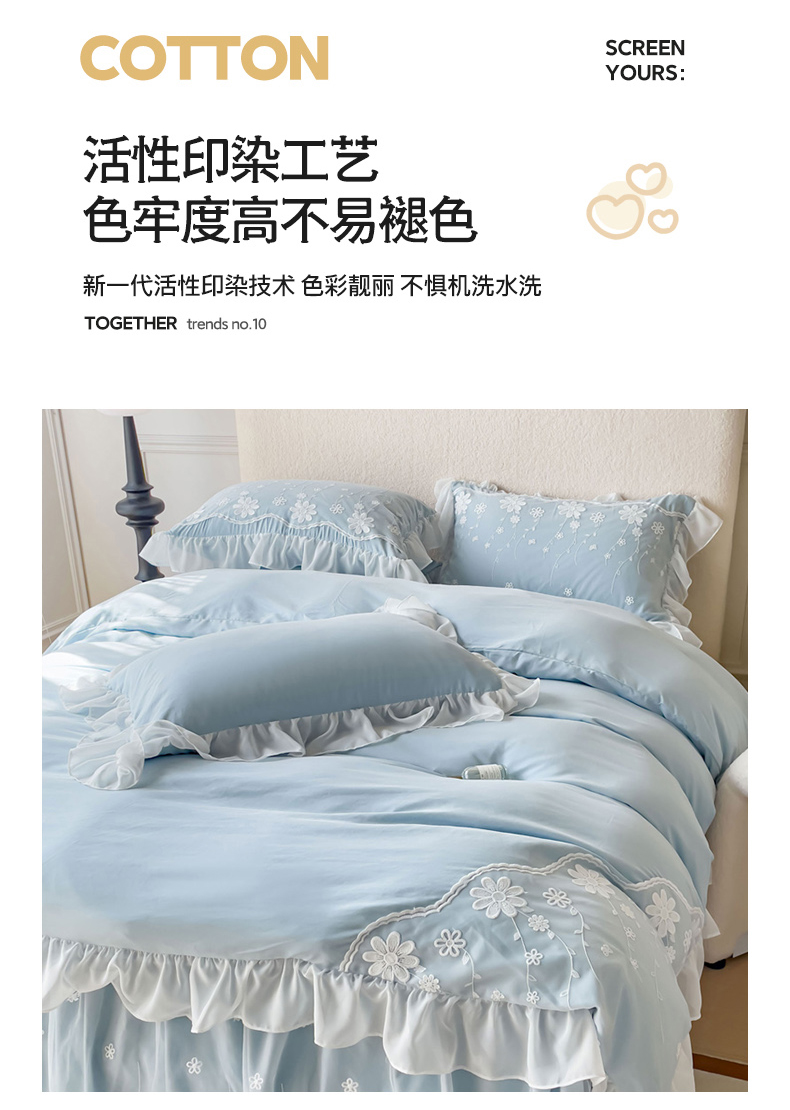 商品名称:睡美人 2026新款锦棉蕾丝款系列韩版公主风床裙四件套-花舞 花舞-青春兰