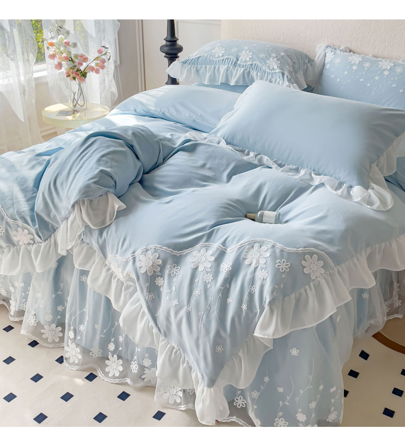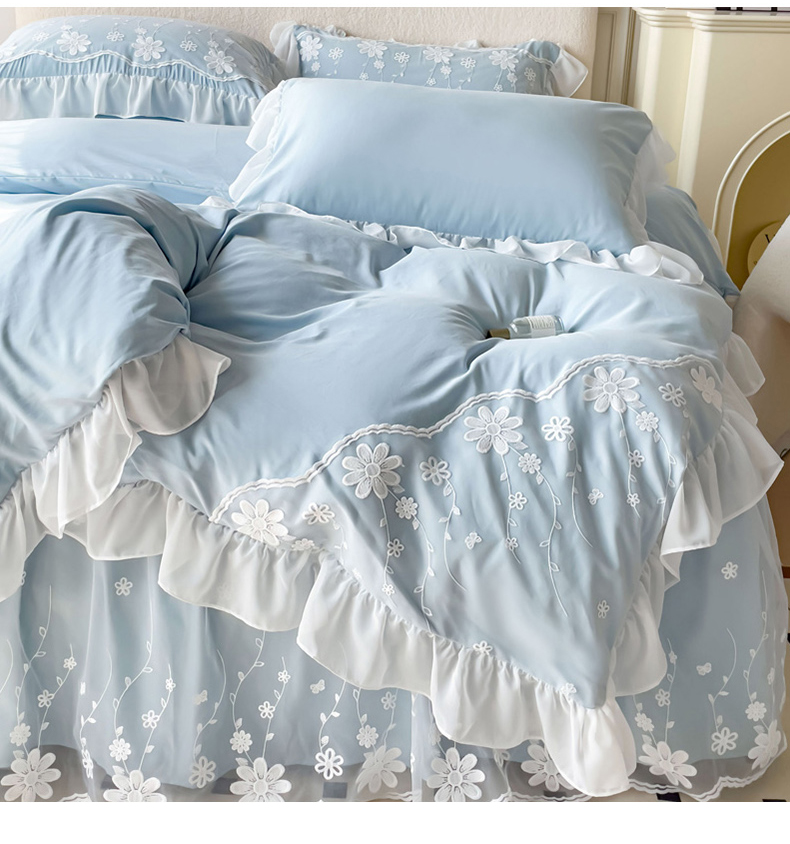 睡美人 2026新款锦棉蕾丝款系列韩版公主风床裙四件套-花舞 花舞-青春兰