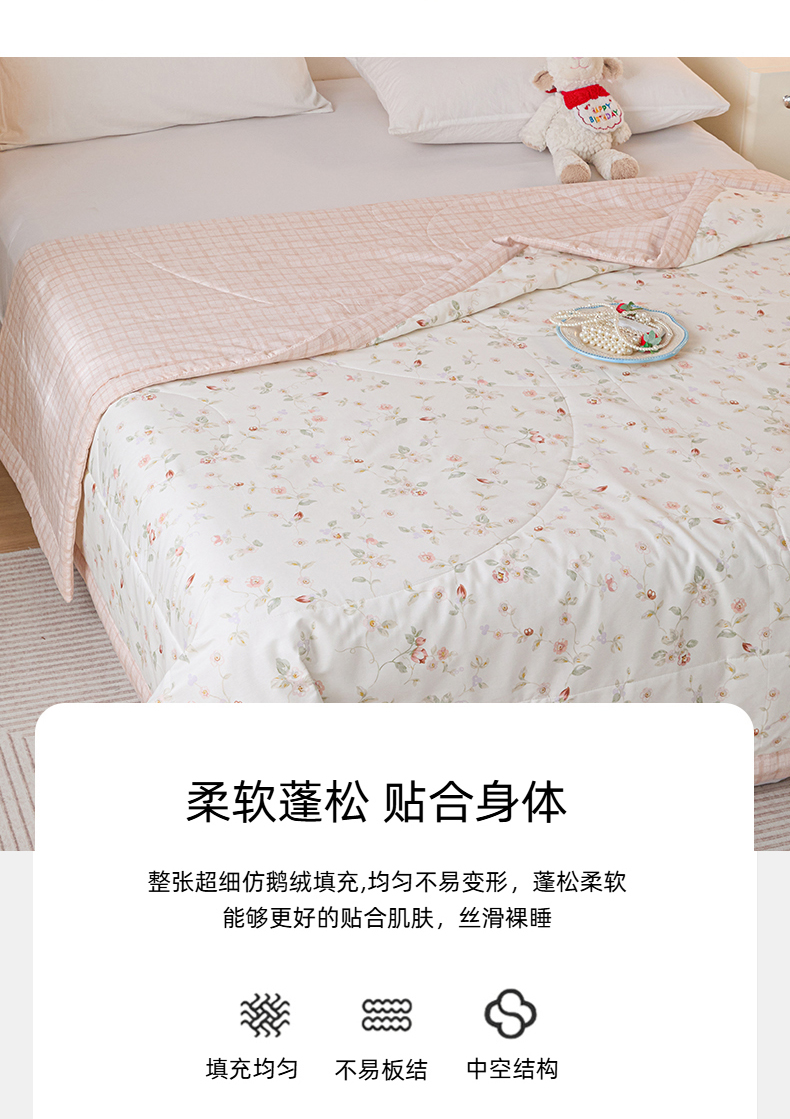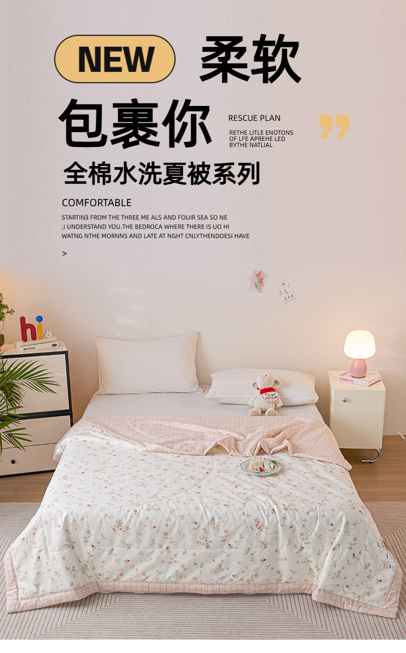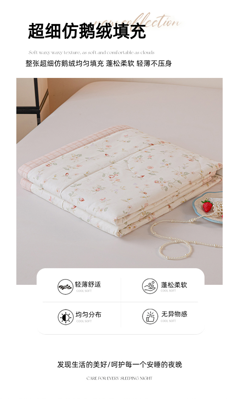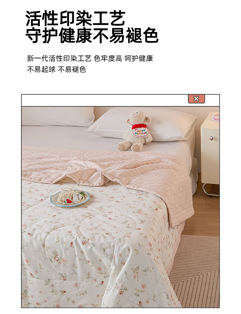 商品名称:亿莱鑫 2026春夏新款全棉水洗印花夏被夏凉被空调被 枕边花语