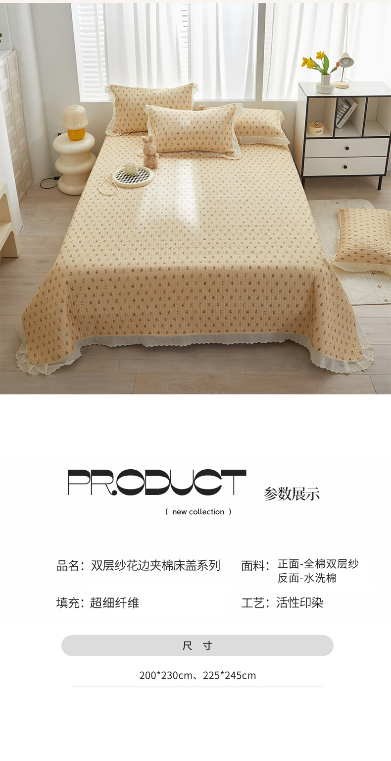 (总)舒居家纺 2026新款全棉双层纱花边床盖单件床盖单品单床盖,组合图仅供展示不可下单,山岚绮梦,小飞象,团团,浅影--灰,南瓜小贝,可艾兔,黛西,小时光粉