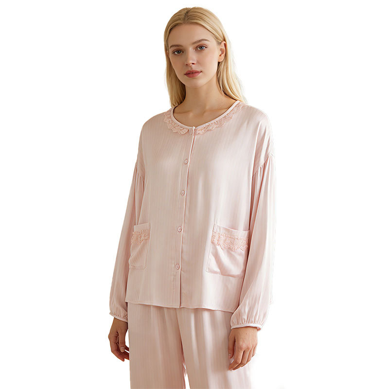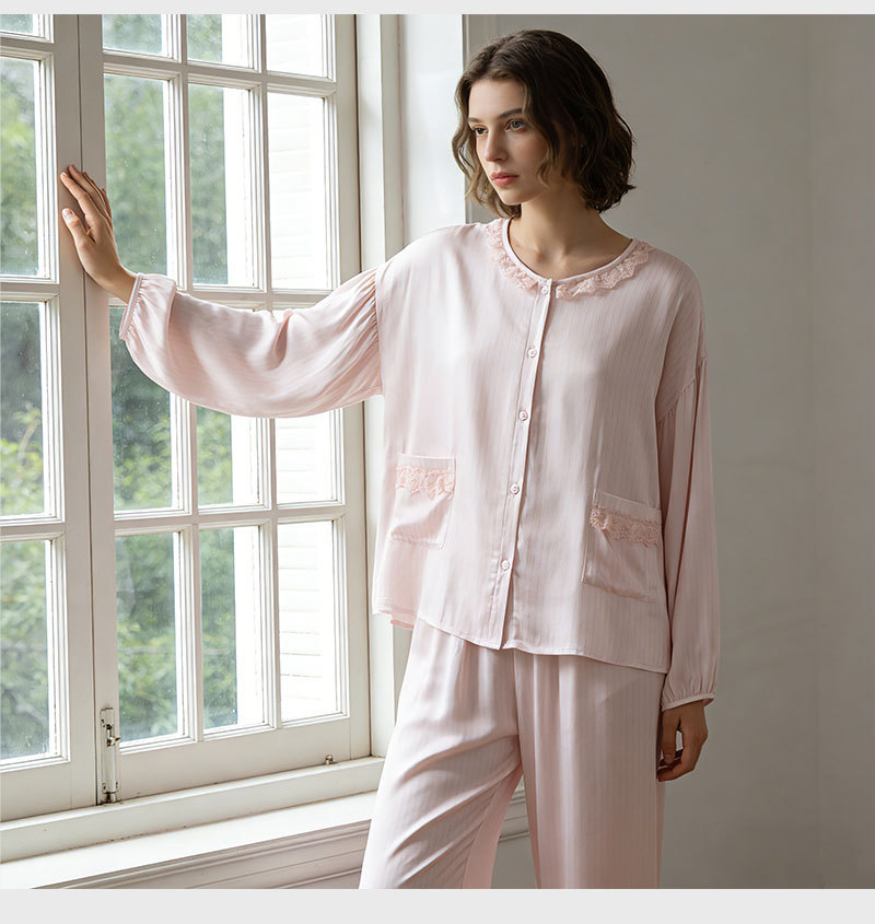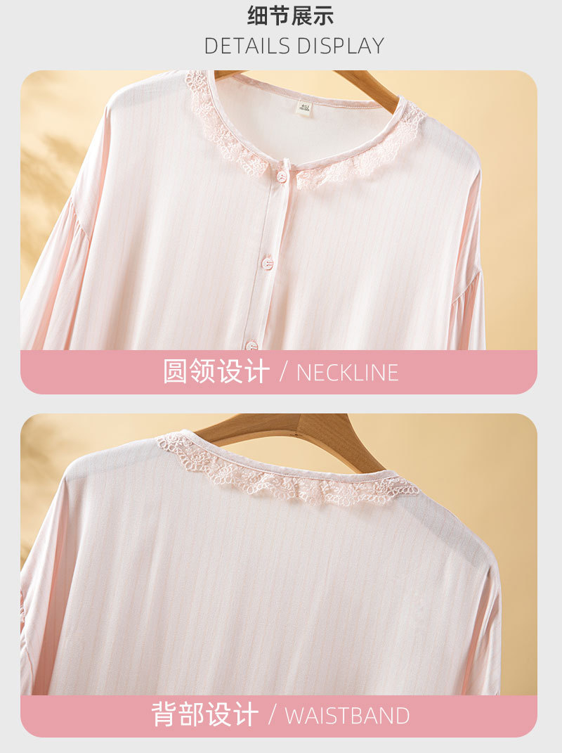 当前位置: 91家纺网 > 商品网购 > 居家日用 > 睡衣/家居服套装 > (总)洛兰沙家居馆 2026春季新款睡衣女甜美蕾丝花边开衫大码天丝棉家居服套装可外穿