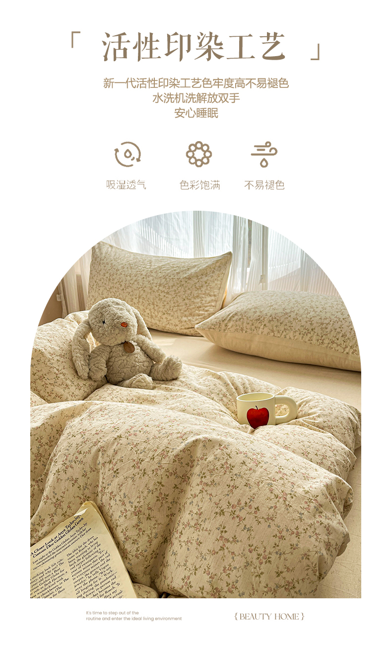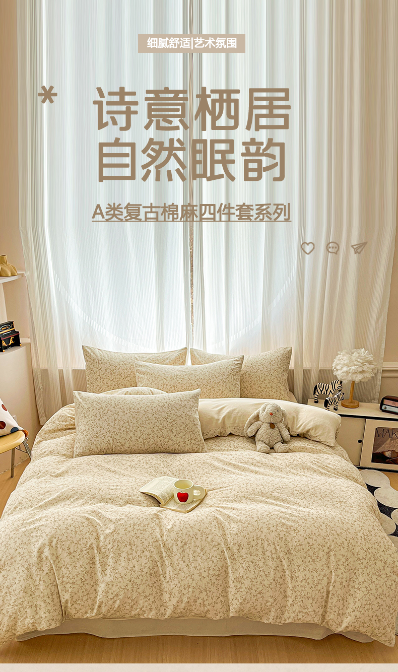 商品名称:寐居家纺 2026新款A类复古棉麻四件套 暖阳花绒