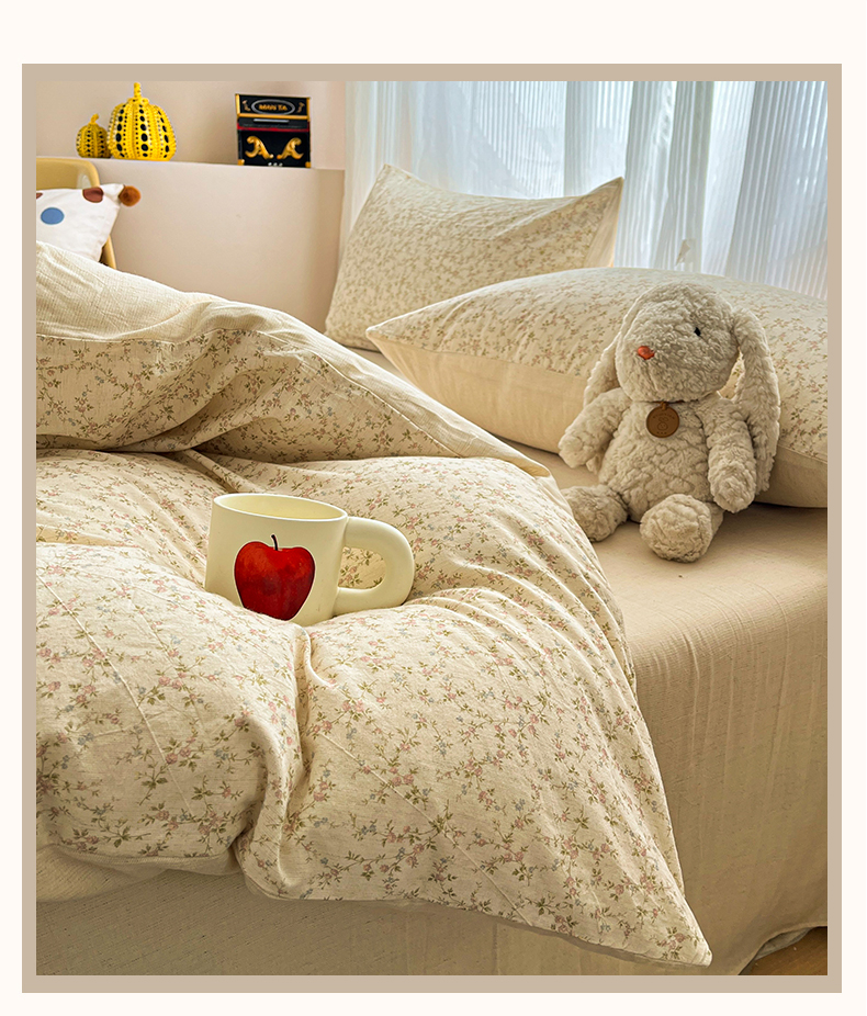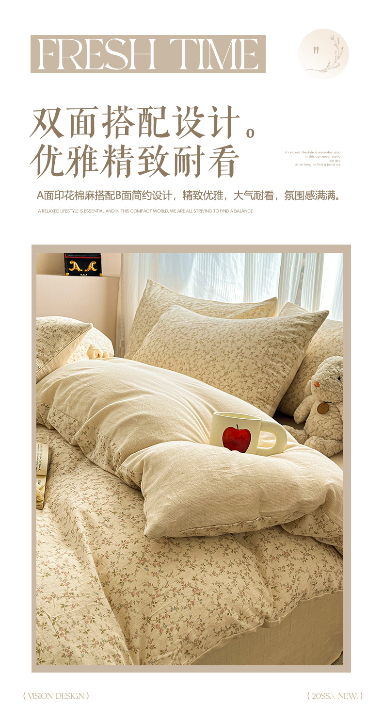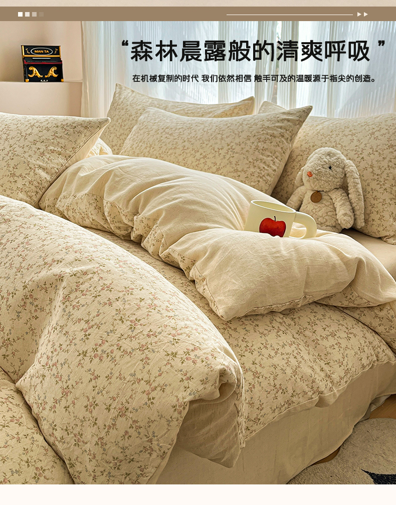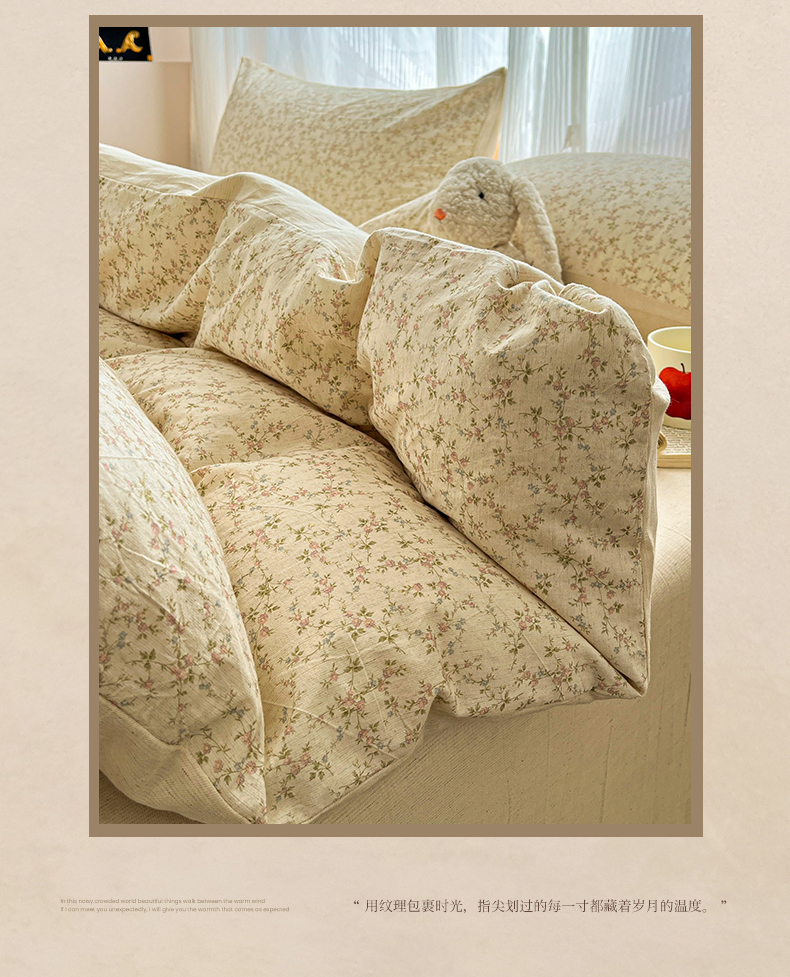 寐居家纺 2026新款A类复古棉麻四件套 暖阳花绒