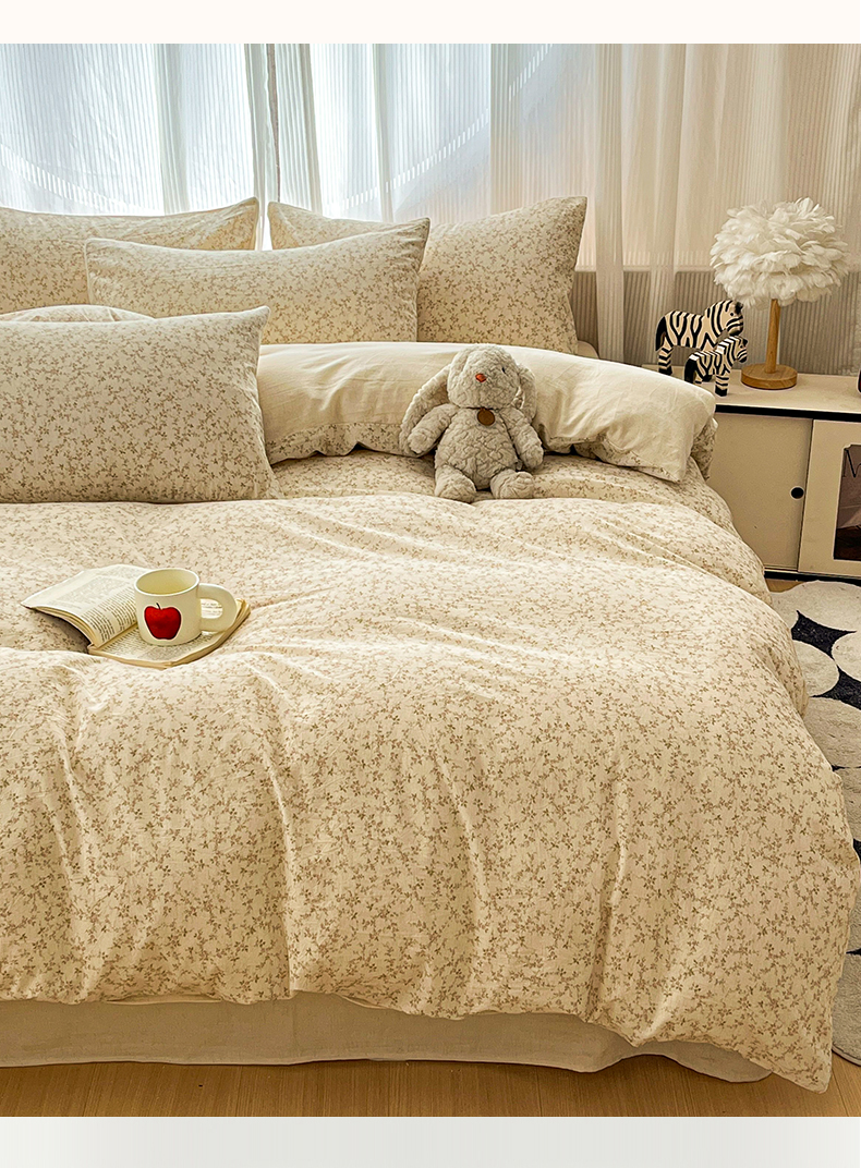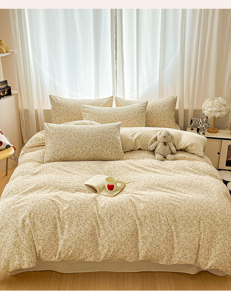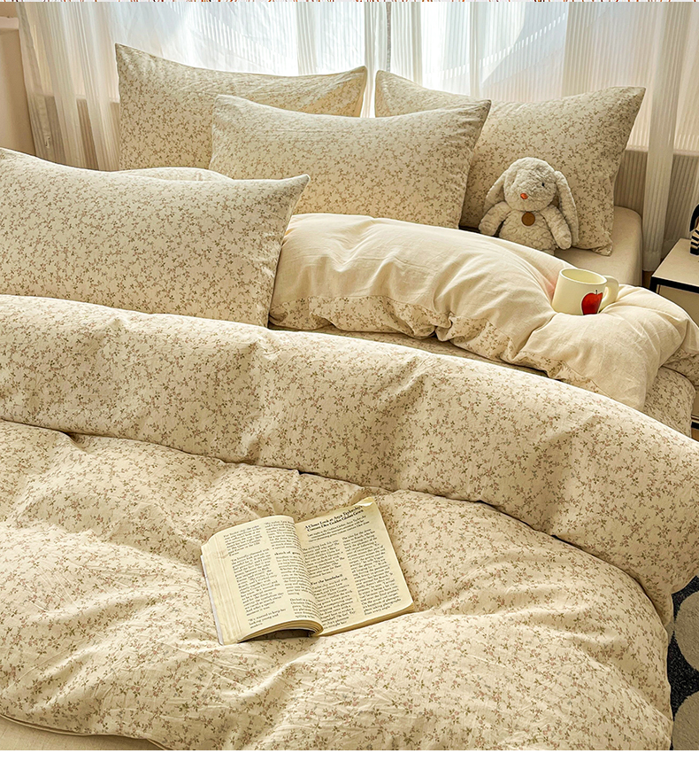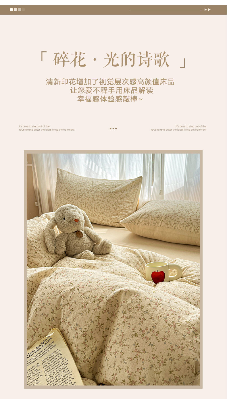 寐居家纺 2026新款A类复古棉麻四件套 暖阳花绒