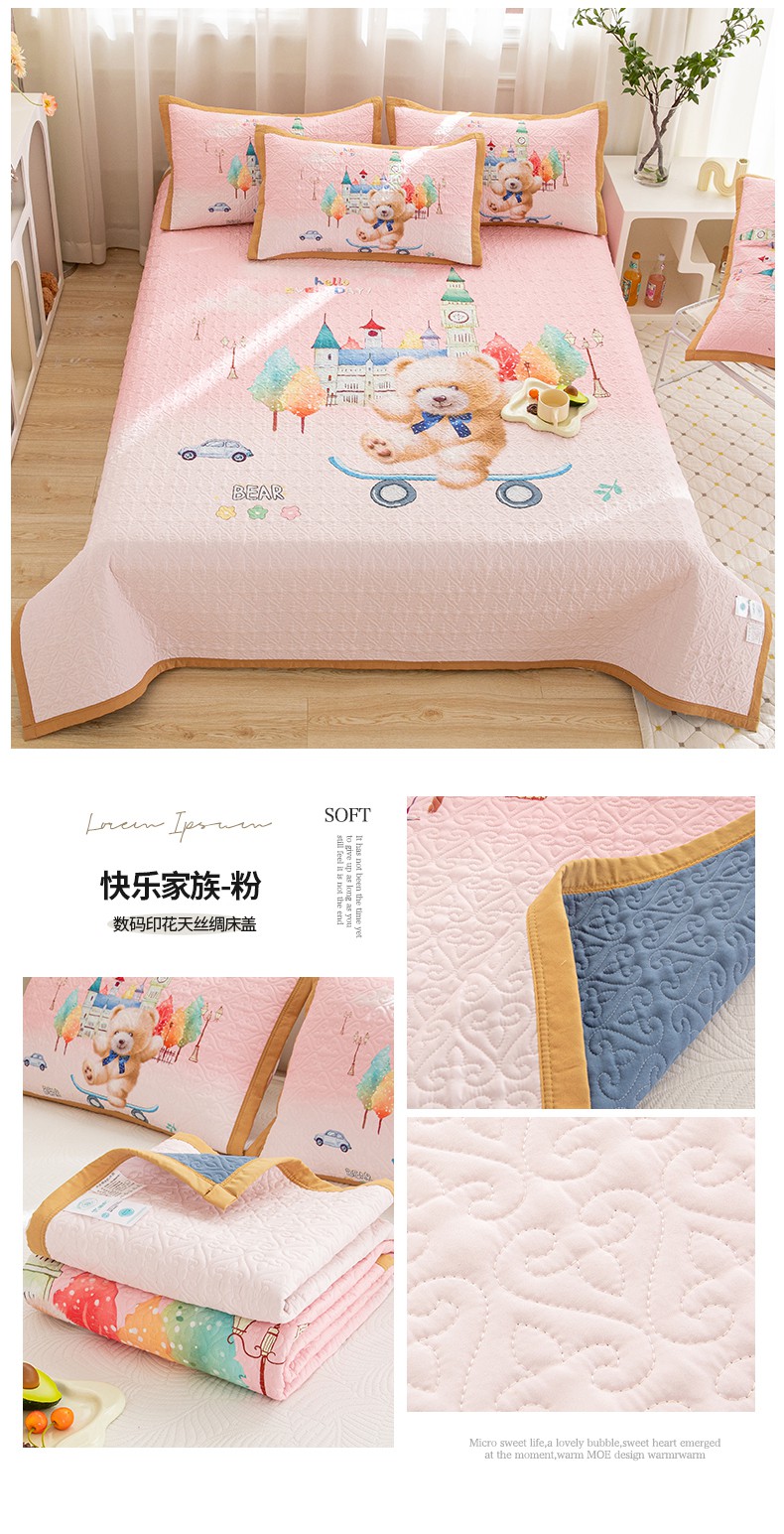 麦田家纺 2026新款天丝绸大版数码印花单床盖床盖单件 小熊比尔-绿