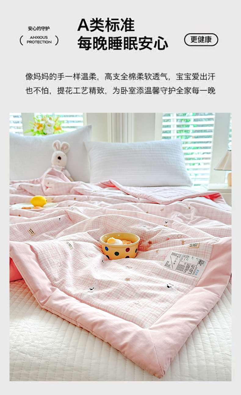 (总)优贝家纺 2026新款水洗棉云朵棉双层纱手包边抗菌夏凉被空调被 被子被芯,动物派对,春日萌兔,蝴蝶结,花间梦,花香丽影,腊肠狗,奶咖波点,绅士熊,童年回忆,星星小熊