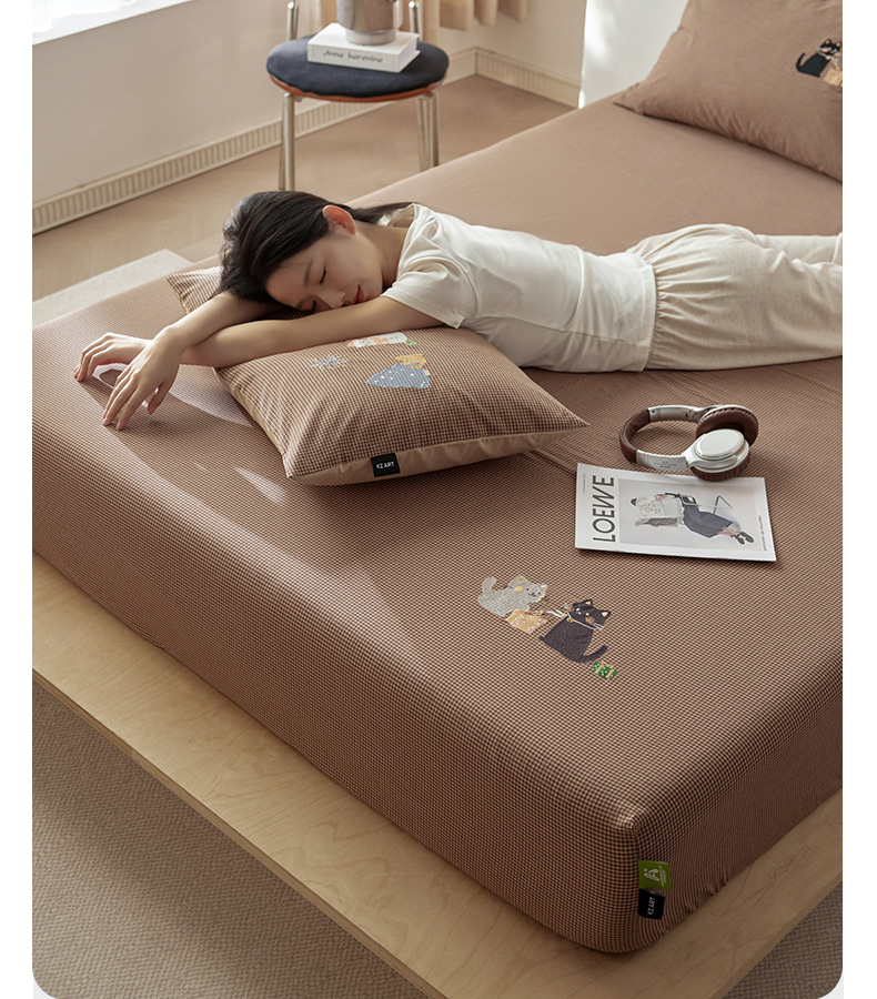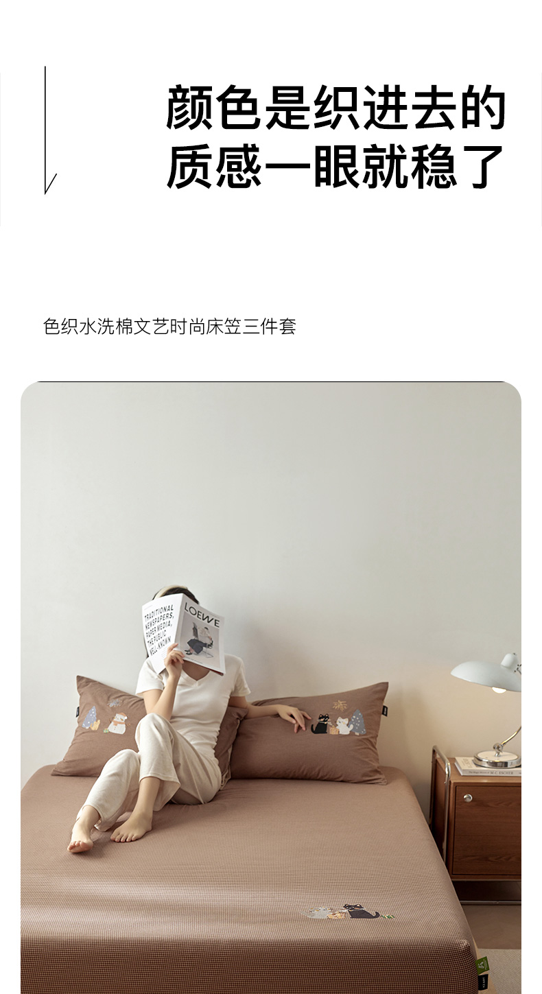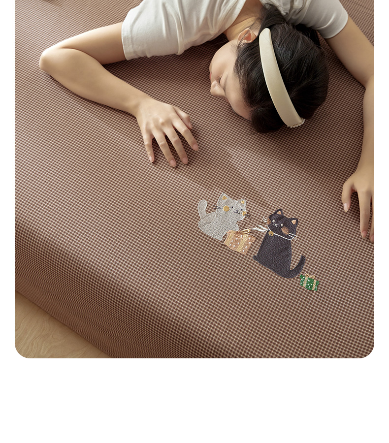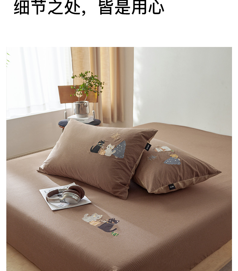 • 91家纺网 家纺一手货源 找家纺 卡姿家纺 2026春夏全棉色织水洗棉文艺时尚床笠三件套 床笠-猫咪礼物