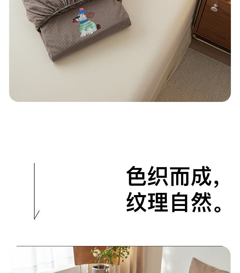 (总)卡姿家纺 2026春夏全棉萌趣气质大贴布系列四件套— 第一季,大鹅,卡皮巴拉,小粉象-卡其格,小粉象-蓝格