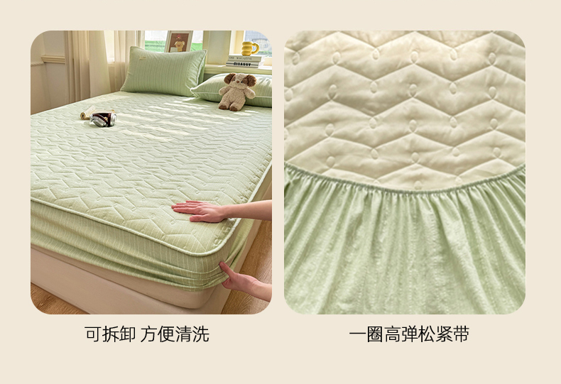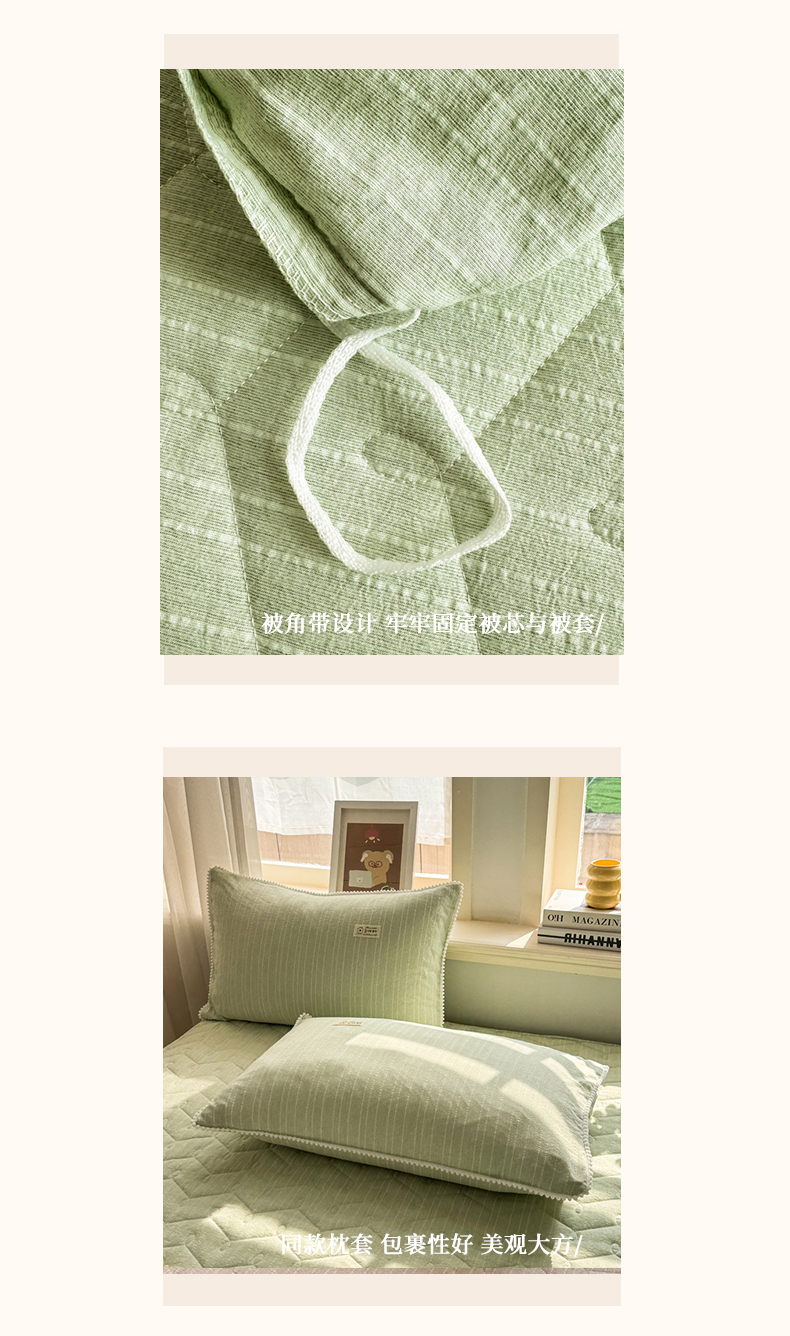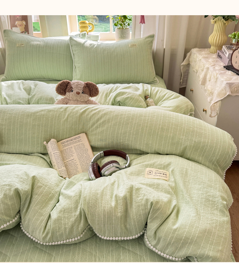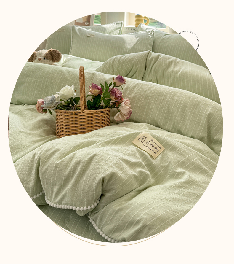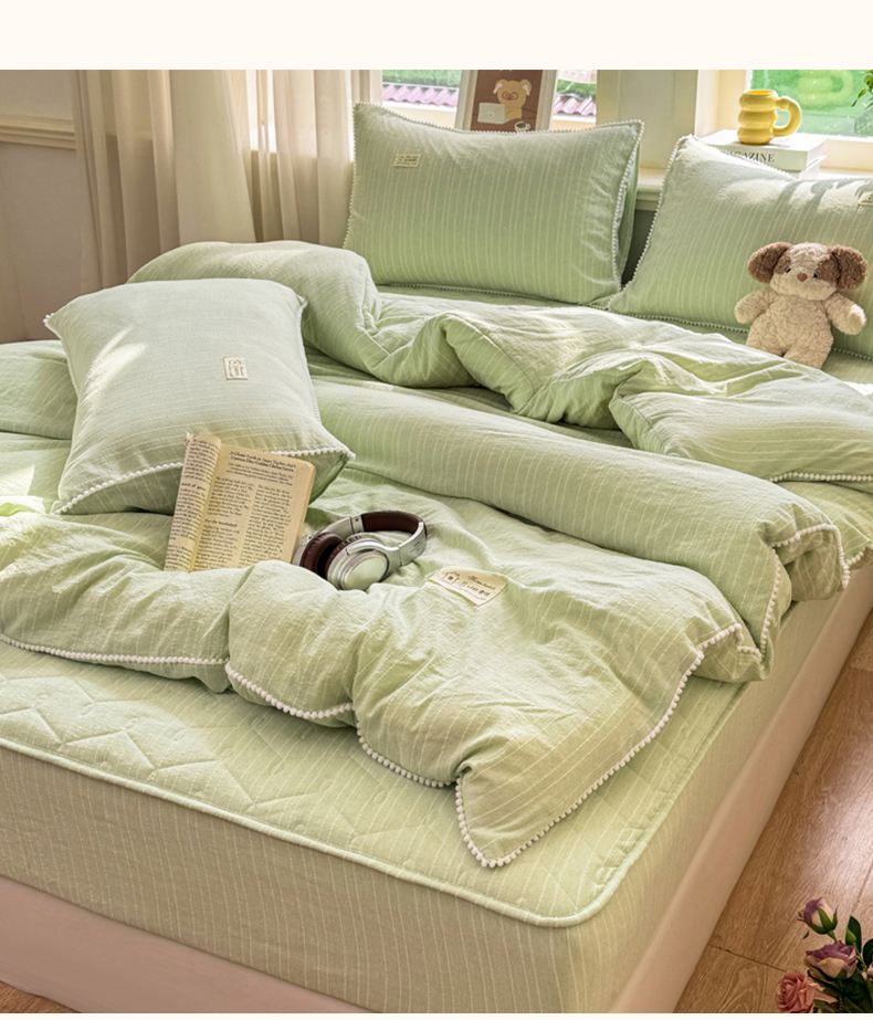 当前位置: 91家纺网 > 商品网购 > 床品套件 > 四件套 > 色织四件套 > 蝶帕家纺 2026新款无印色织提花加棉床笠四件套 泡芙绿