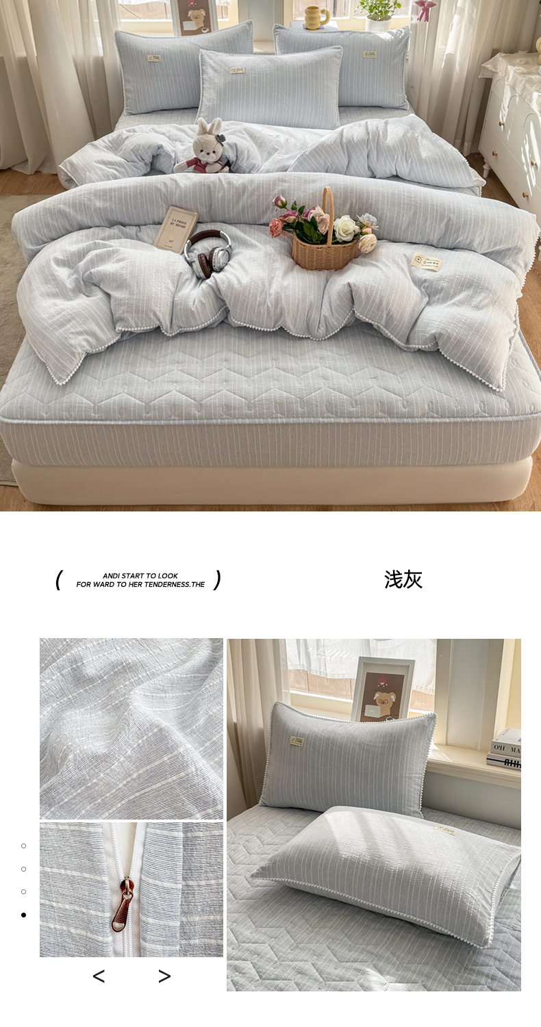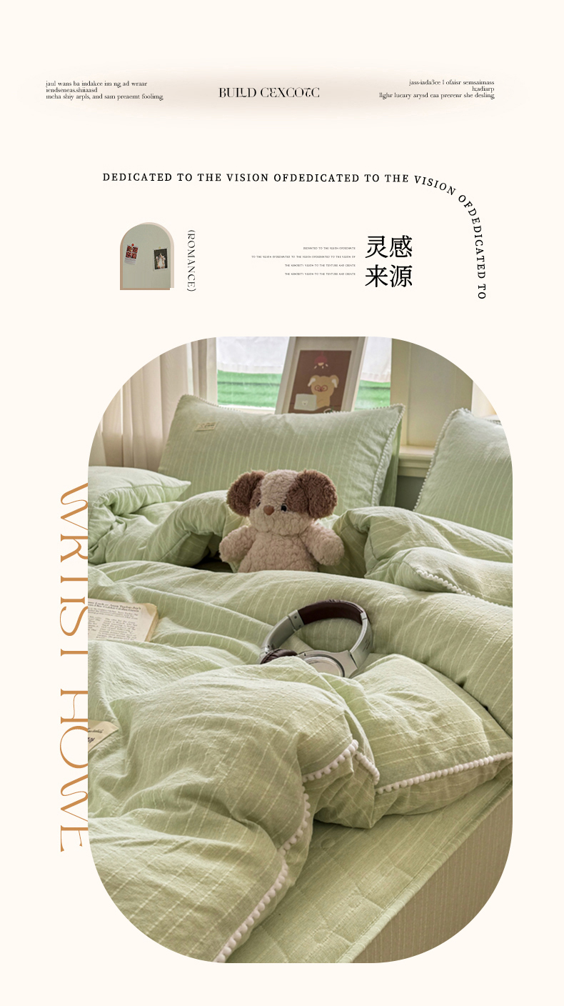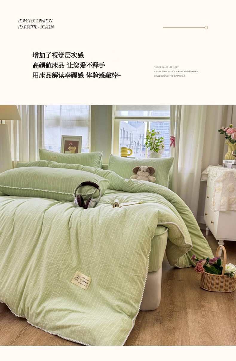 当前位置: 91家纺网 > 商品网购 > 床品套件 > 四件套 > 色织四件套 > 蝶帕家纺 2026新款无印色织提花加棉床笠四件套 泡芙绿