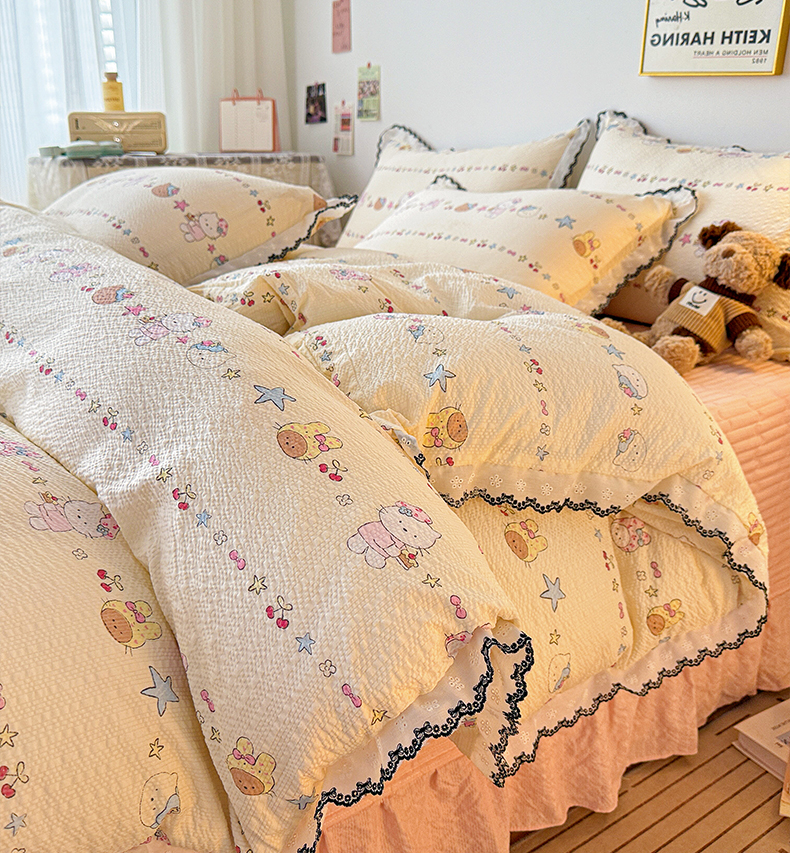 当前位置: 91家纺网 > 商品网购 > 床品套件 > 四件套 > 夏被四件套 > 富米莱(原臻工厂) 2026春夏新款云感泡芙棉复古法式花边床盖床裙被套夏凉被四件套一小红书推荐 复古花边-星月童话