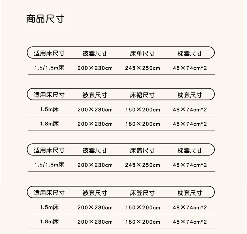 【床笠款】1.8四件套-被套200x230 | ¥75.00 |