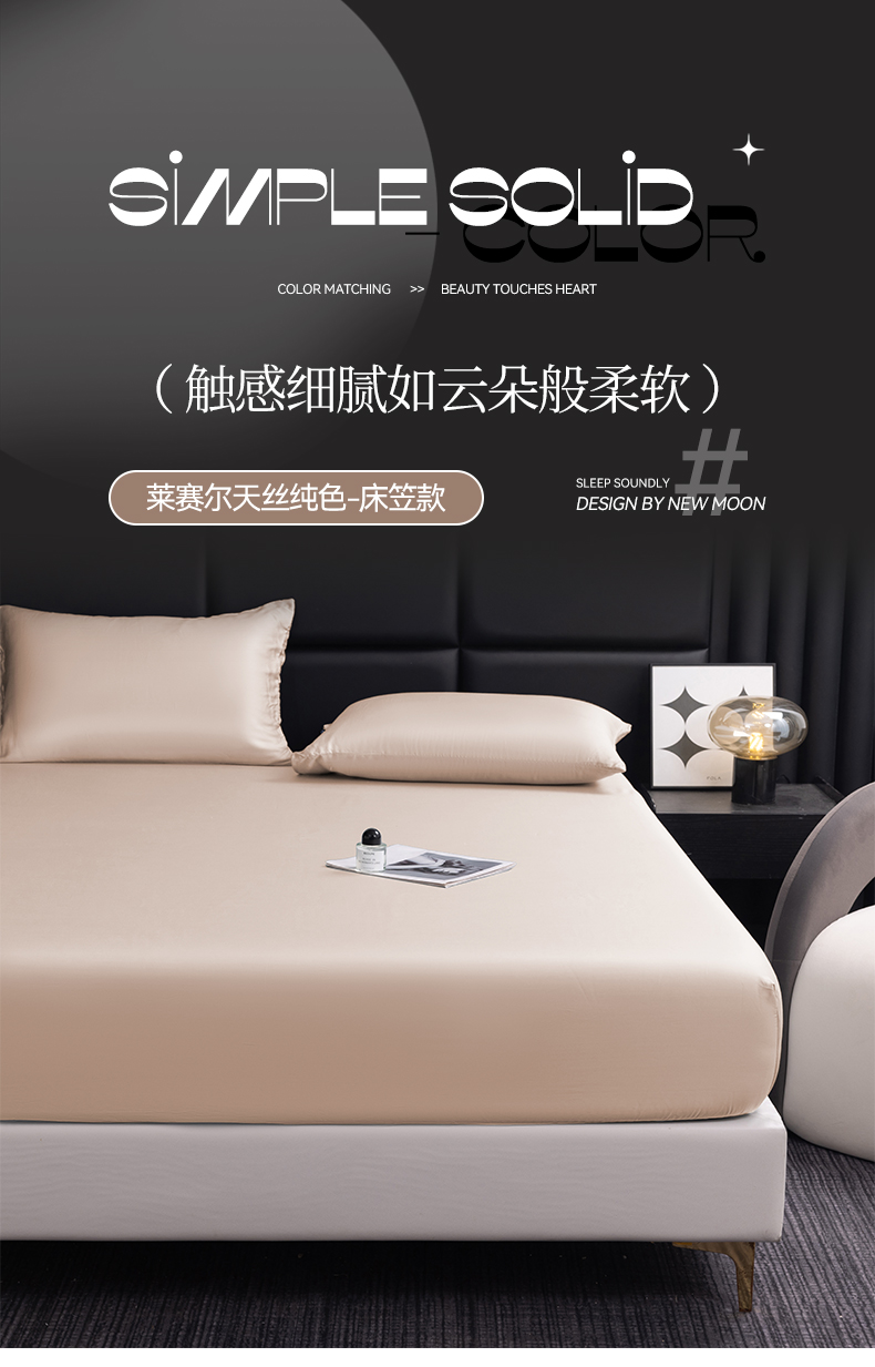 • 91家纺网 家纺一手货源 找家纺 慕梵家居 2026新款莱赛尔天丝纯色单床笠床笠单件 纱褐色
