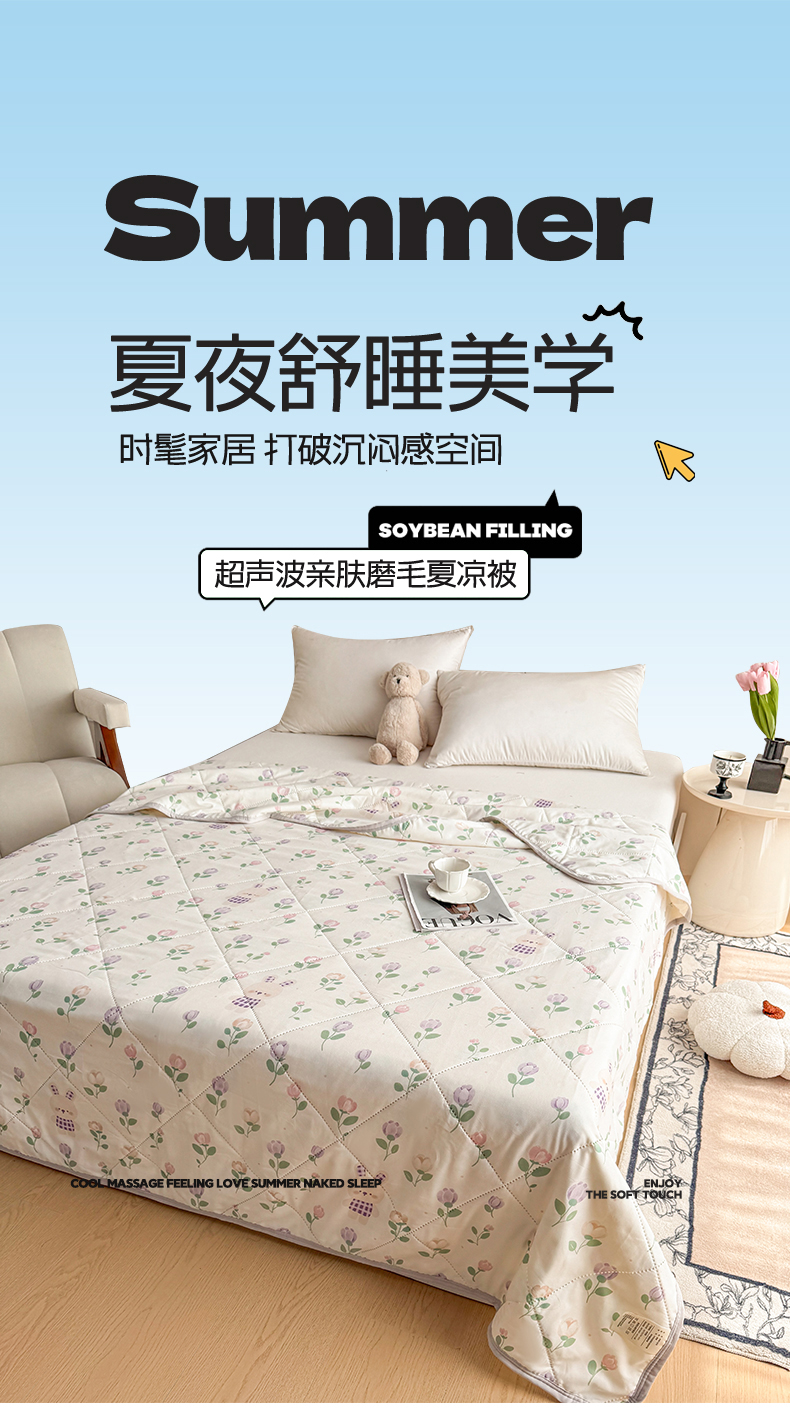 商品名称:薇玛仕 2026电商爆款印花小清新超声波大豆夏凉被礼品空调被 花间逐兔