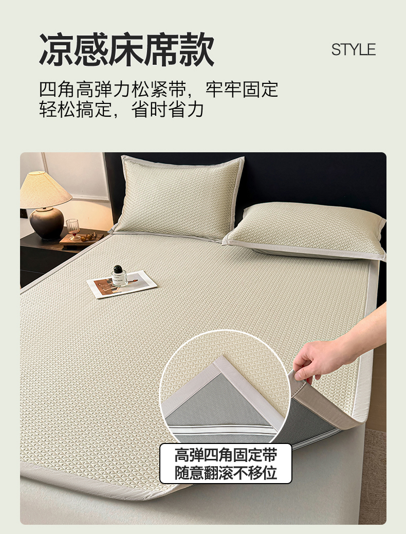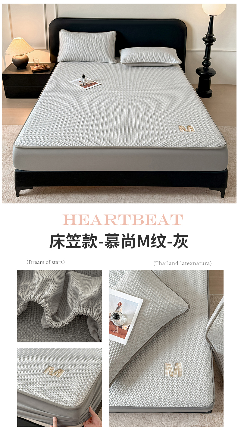 • 91家纺网 家纺一手货源 找家纺 鑫姿席业 2026新款夏季高端竹席pe藤席空调软席可水洗席子凉席-慕尚M纹 床笠款-慕尚M纹-灰