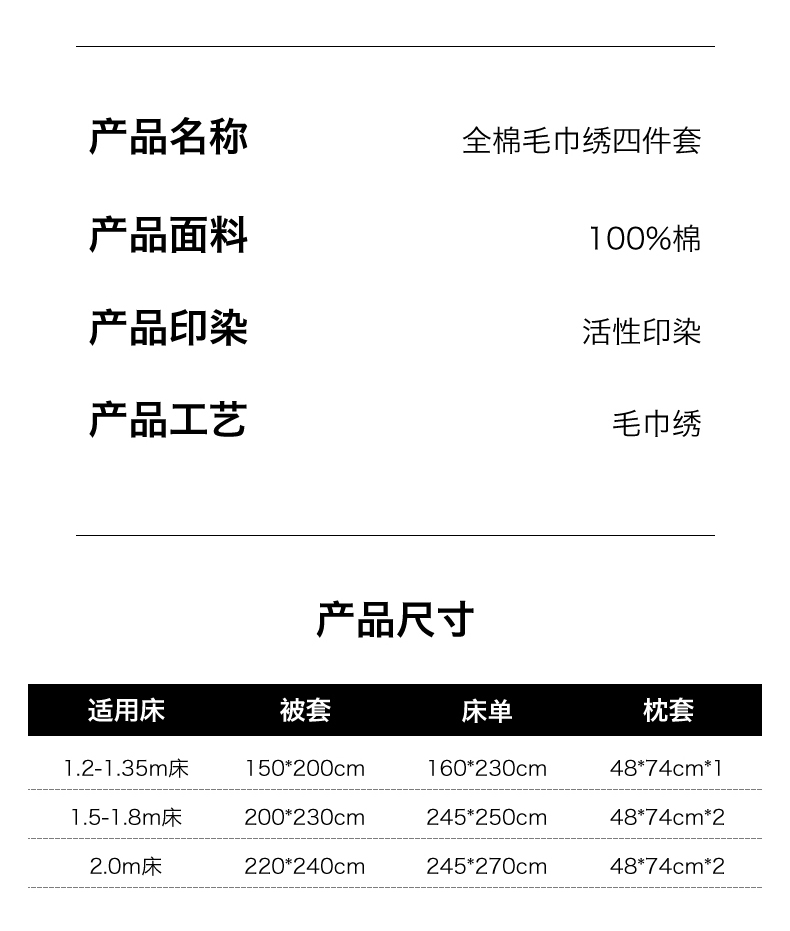 商品名称:(总)857家居 2026新款全棉毛巾绣四件套