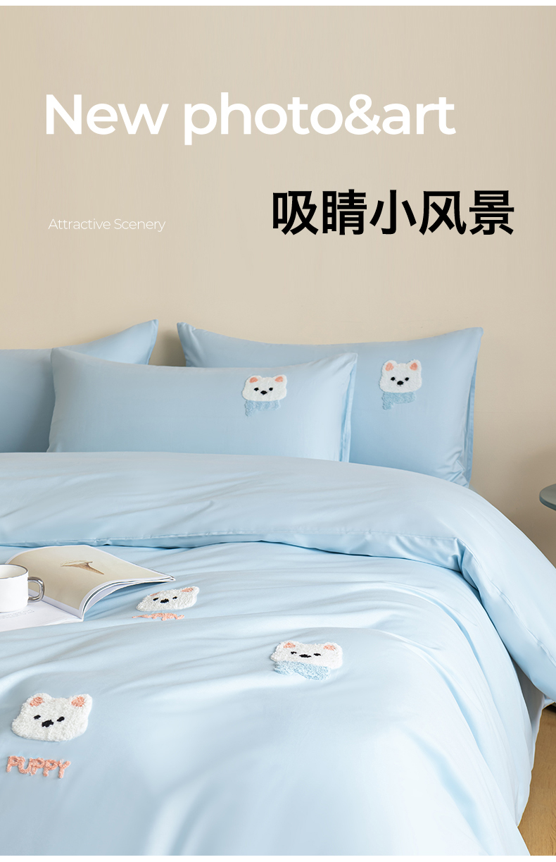 (总)857家居 2026新款高克重牛奶绒刺绣四件套,嘟嘟卡皮