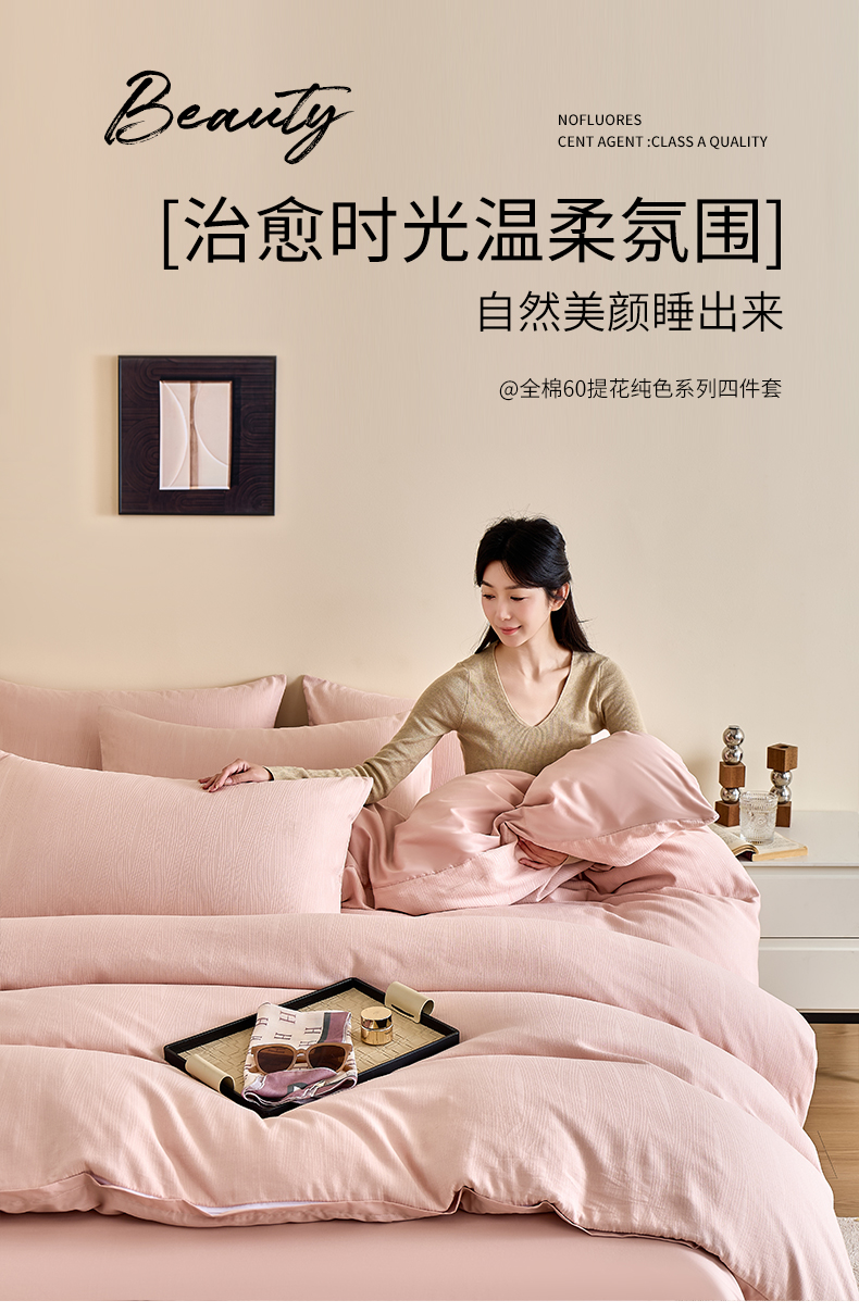 当前位置: 91家纺网 > 商品网购 > 床品套件 > 四件套 > 全棉普通四件套 > 九沐良品 2026新款A类60支全棉纯棉贡缎大提花四件套 佐冉-粉
