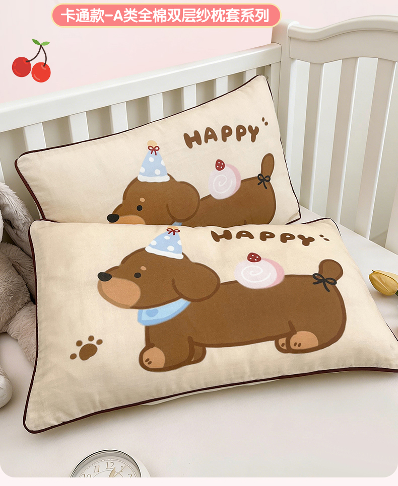 (总)雯豆家纺 2026新款全棉双层纱布枕套儿童卡通枕芯定位纯棉大版枕头套,双层纱-欢乐小狗,双层纱-快乐熊,双层纱-腊肠狗,双层纱-萌萌狗,双层纱-泡芙西高地,双层纱-甜甜兔,双层纱-顽皮狗,双层纱-小恐龙,双层纱-小熊猫