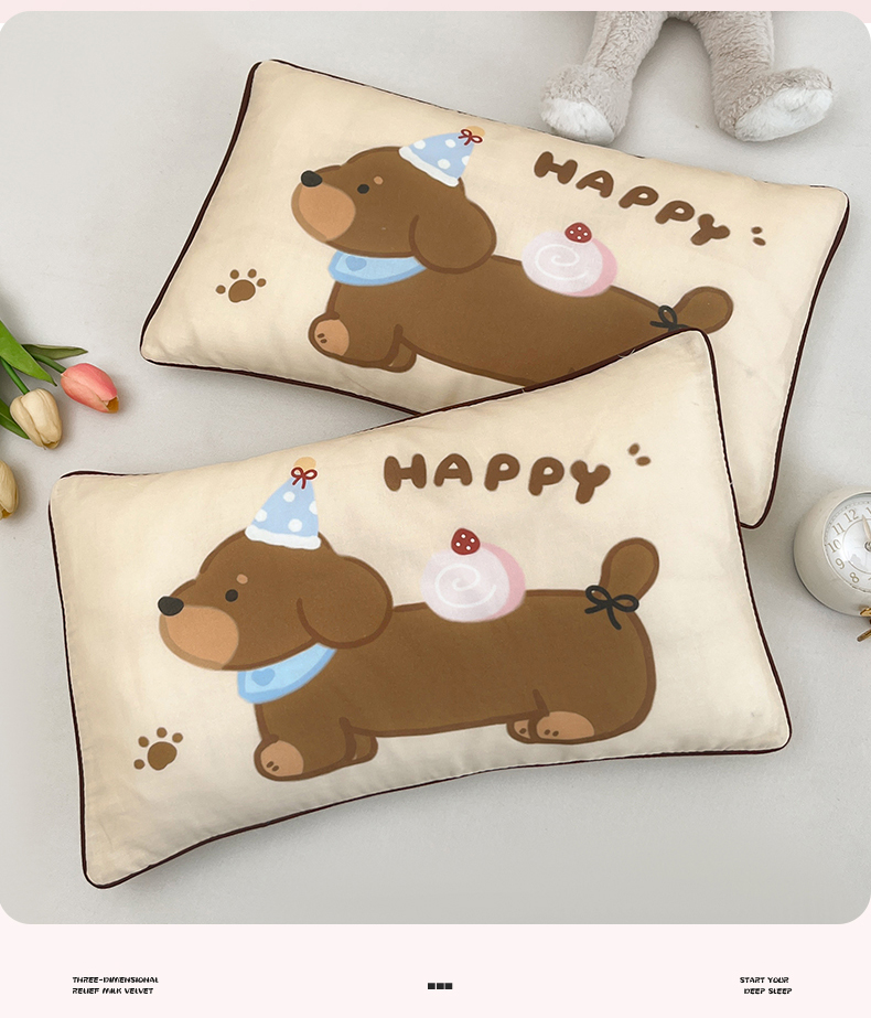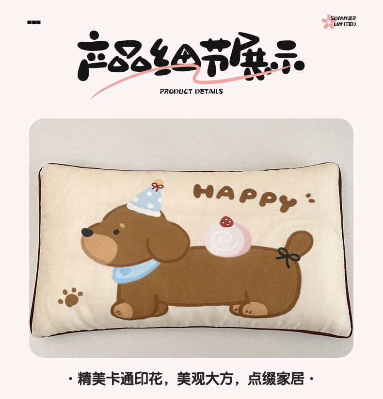 商品名称:雯豆家纺 2026新款全棉双层纱布枕套儿童卡通枕芯定位纯棉大版枕头套 双层纱-腊肠狗
