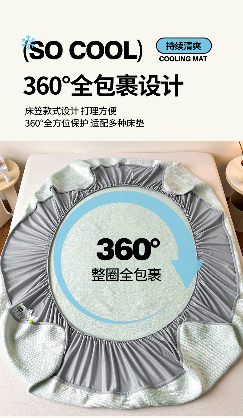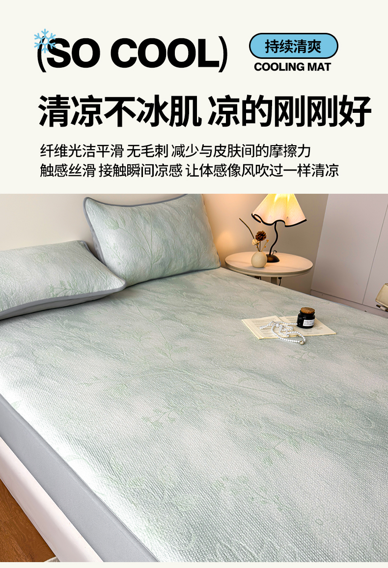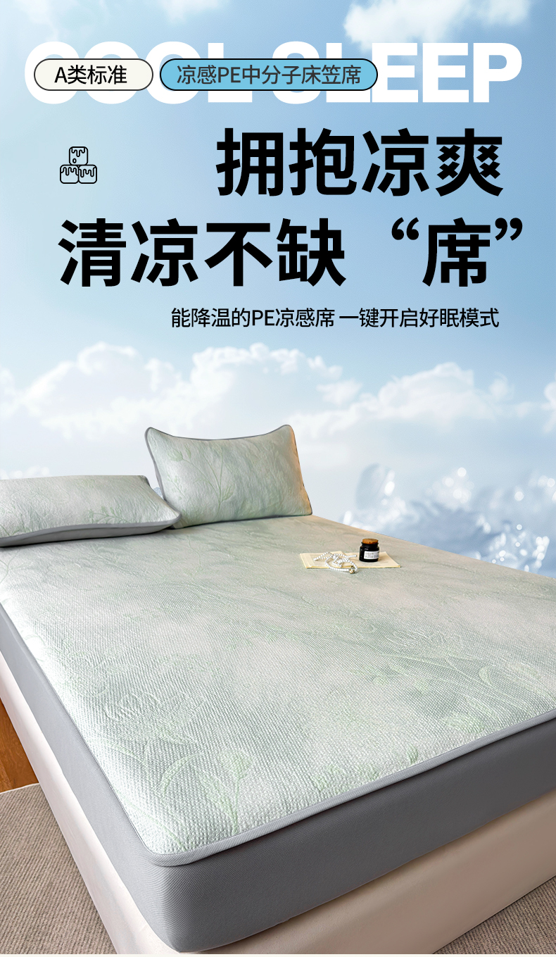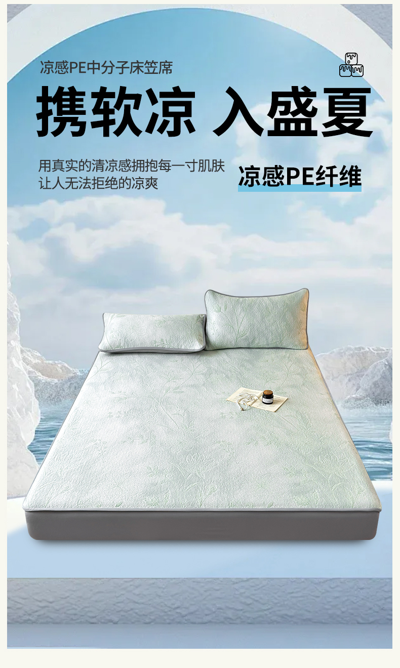 柔品 2026春夏新款PE中分子床笠款凉席席子 巴黎印象 绿