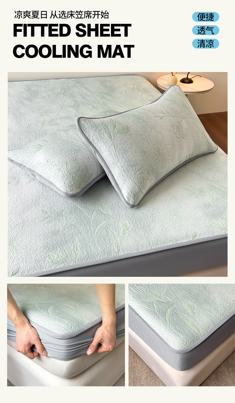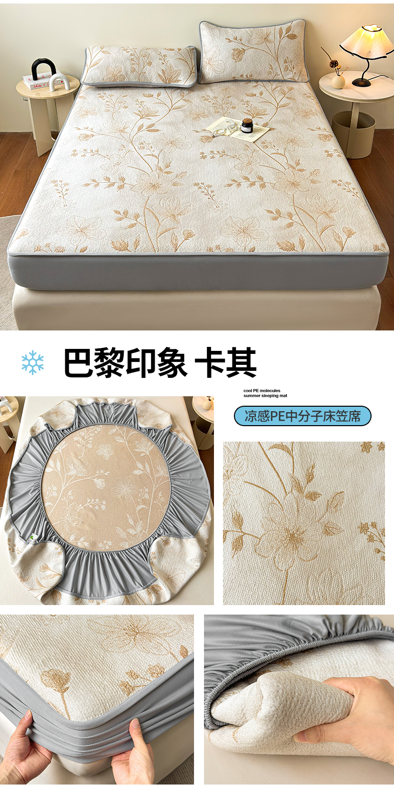 (总)柔品 2026春夏新款PE中分子床笠款凉席席子,巴黎印象 粉,巴黎印象 灰,巴黎印象 卡其,巴黎印象 绿,梦里繁花 粉,梦里繁花 灰,梦里繁花 蓝,梦里繁花 绿