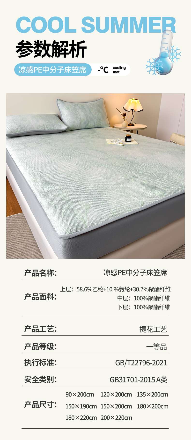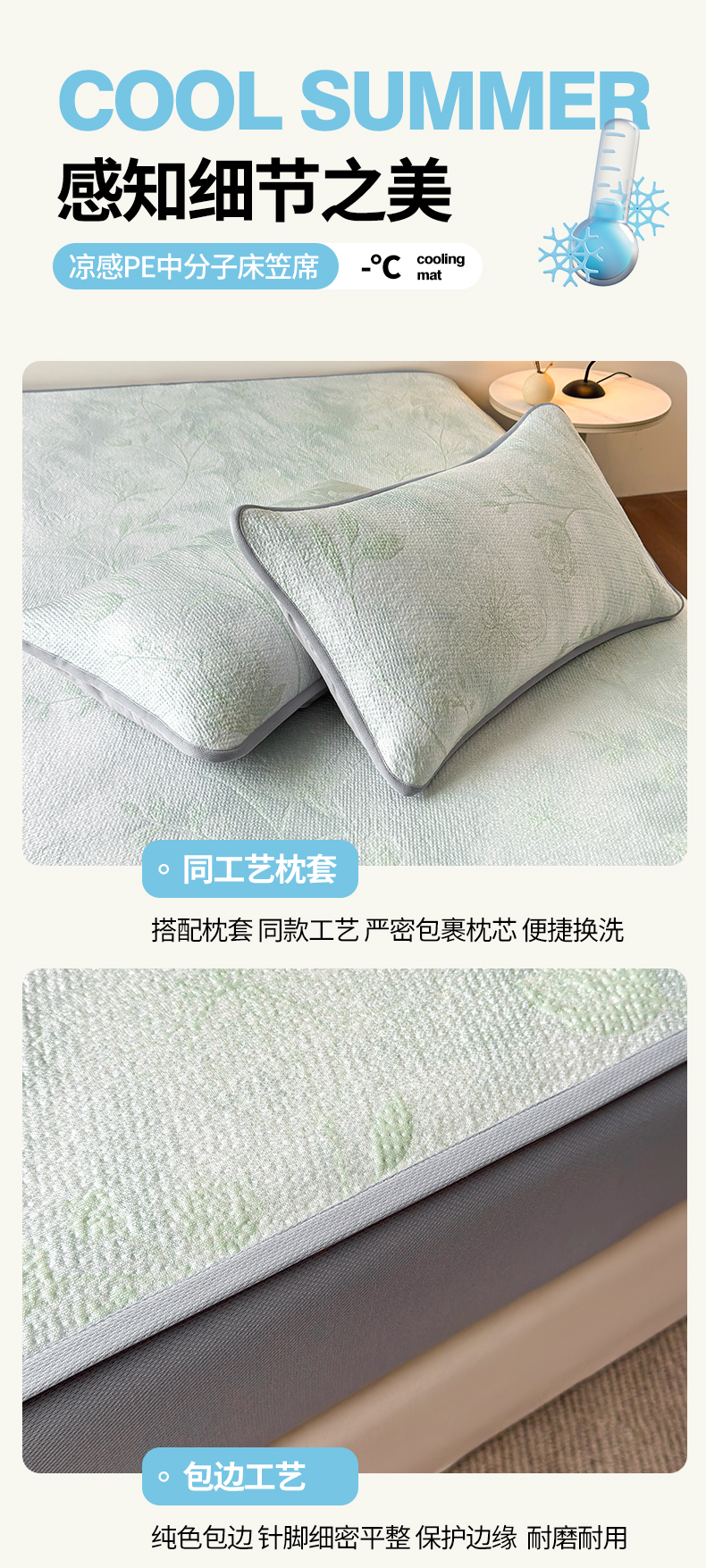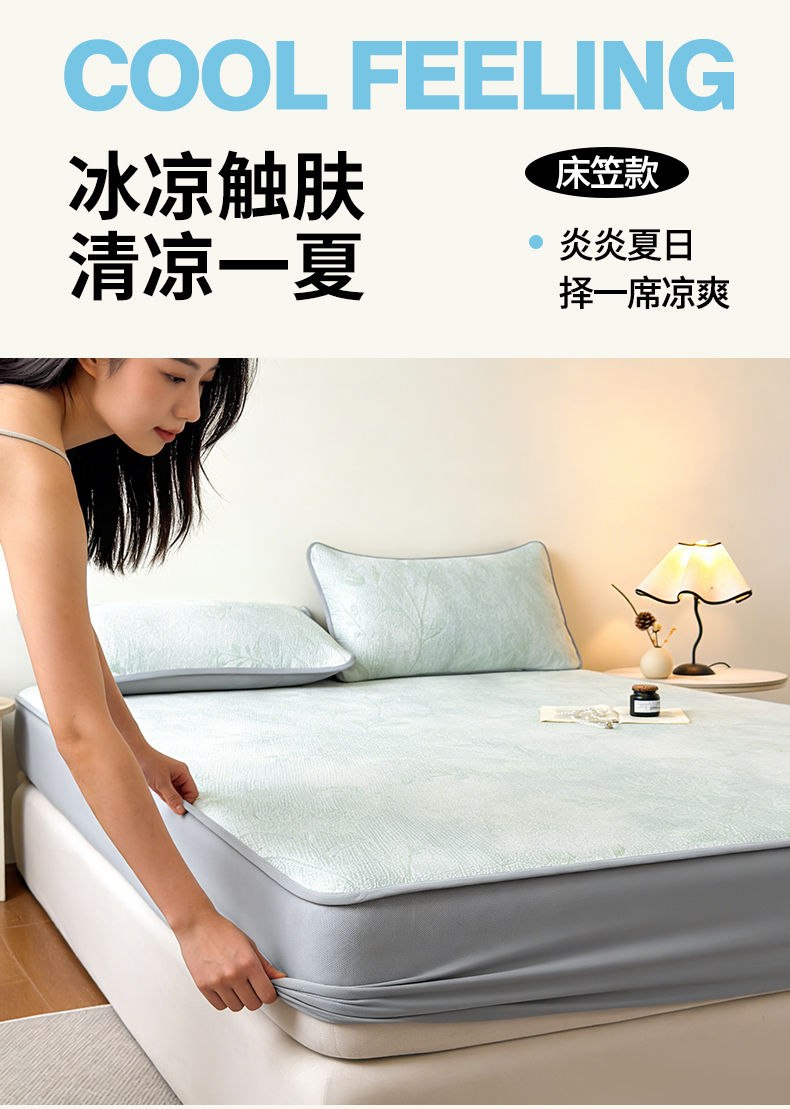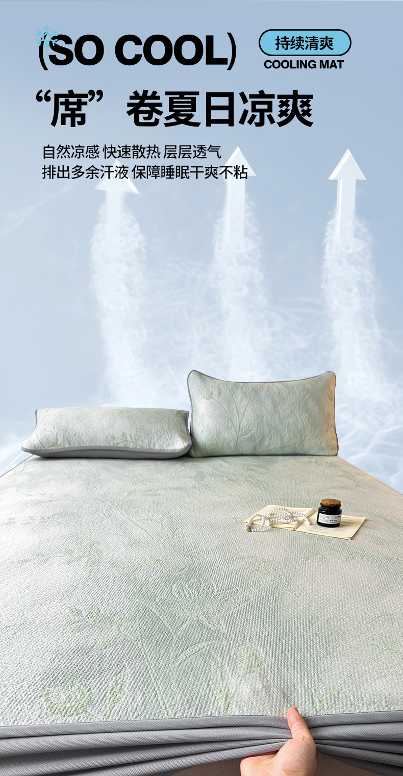 • 91家纺网 家纺一手货源 找家纺 柔品 2026春夏新款PE中分子床笠款凉席席子 巴黎印象 绿