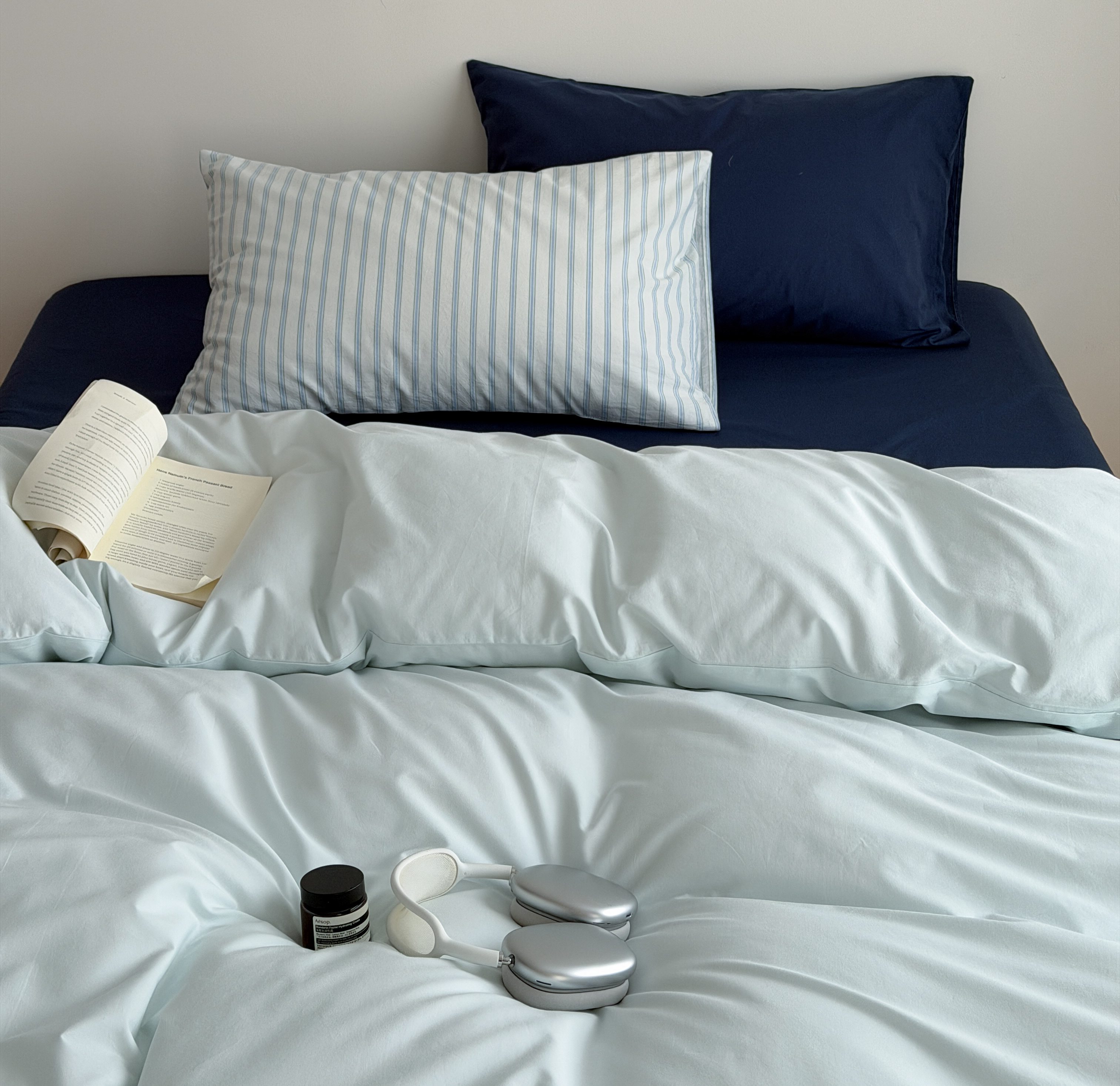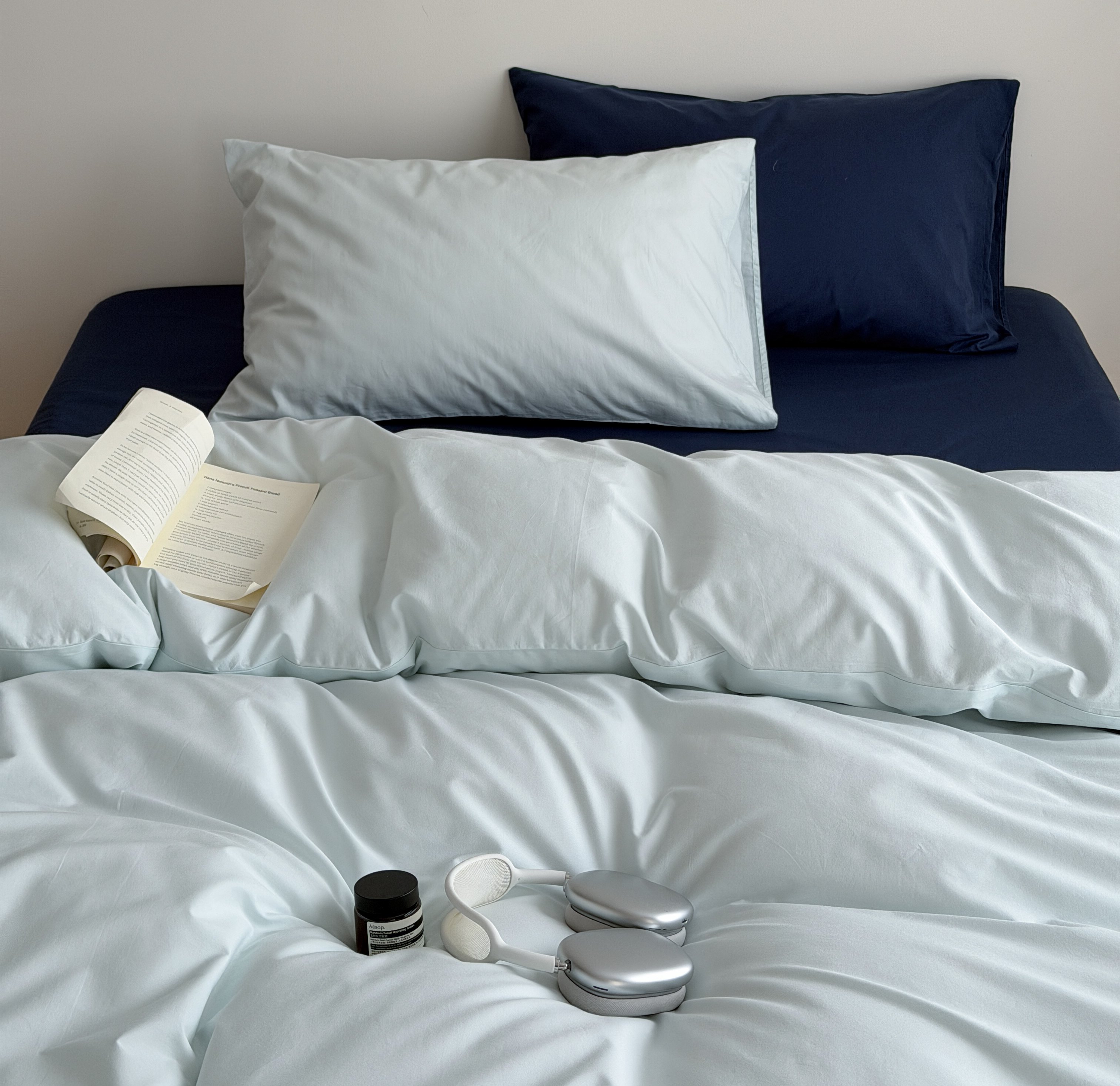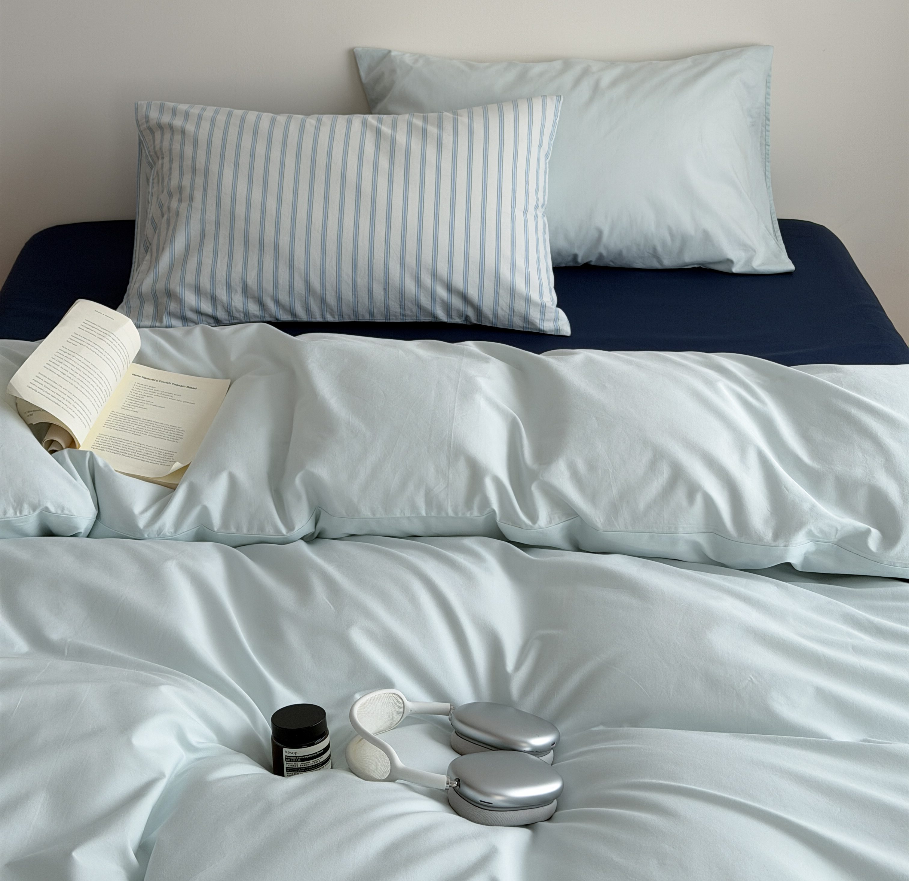 当前位置: 91家纺网 > 商品网购 > 床品套件 > 四件套 > 全棉普通四件套 > 蜜宿 2026新款纯色混搭全棉纯棉40s水洗棉四件套 气泡森林(枕套蓝绿竖条+海蓝)