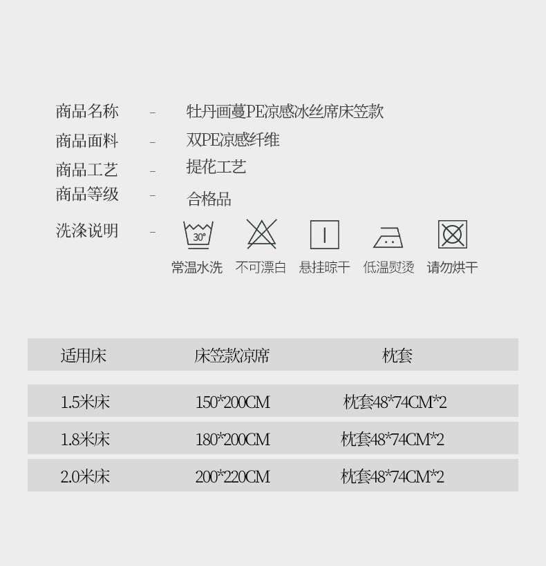 (总)小牛席业 2026新款【实拍风格】双PE高凉感-迪恩玫瑰提花冰丝席(床笠款)凉席竹席藤席冰藤席乳胶席豆豆席,粉色,灰色,蓝色,香槟