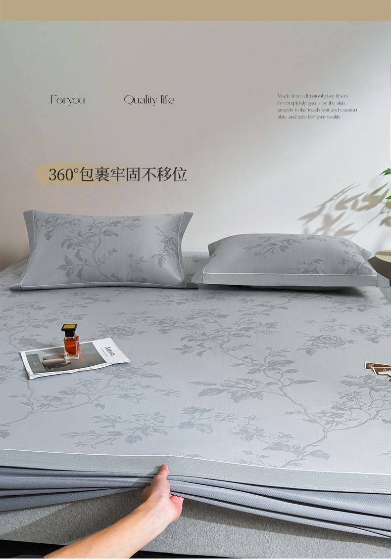 (总)小牛席业 2026新款半定位大提花凉感冰丝席(床笠款)凉席竹席藤席冰藤席乳胶席豆豆席,灰色,粉色,蓝色,香槟
