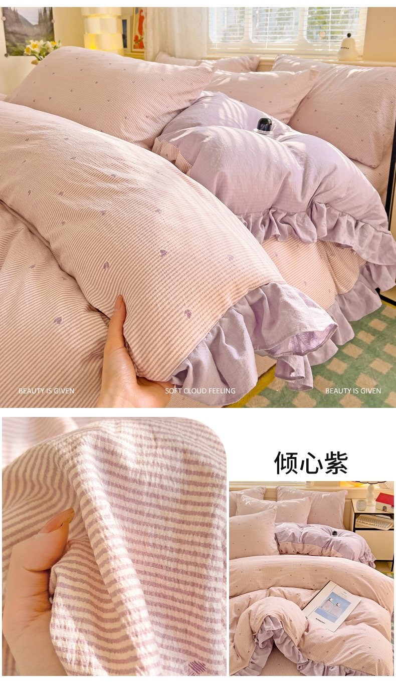 当前位置: 91家纺网 > 商品网购 > 床品套件 > 四件套 > 其它四件套 > 纽缦家纺 2026新款云感提花双层纱韩版床单三件套四件套 清风与雾蓝