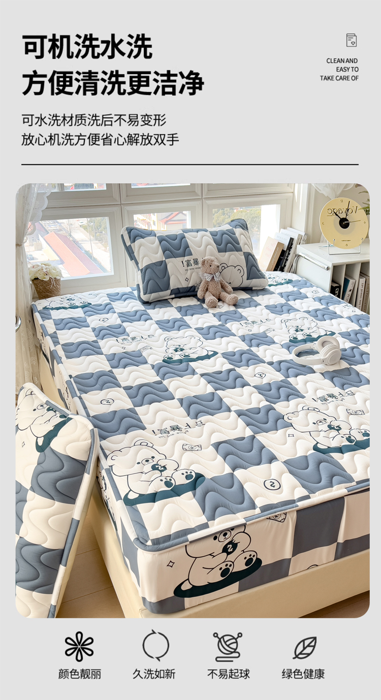 (总)希廷顿 2026新款印花夹棉防水床垫学生款,小恐龙,梦幻森林,小煤球,太空人,luck熊,萌宠狗,马上暴富,草莓熊,星星犬,熊本熊,熊猫攀竹,云之恋