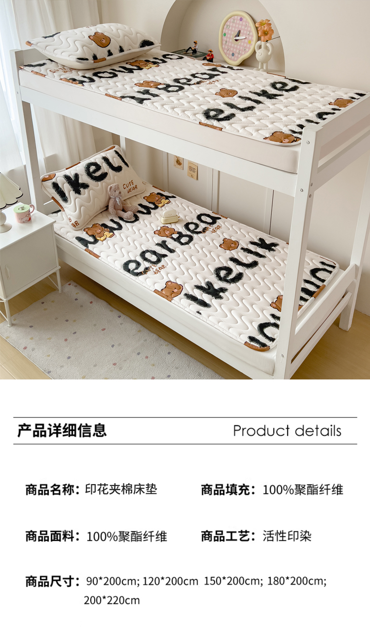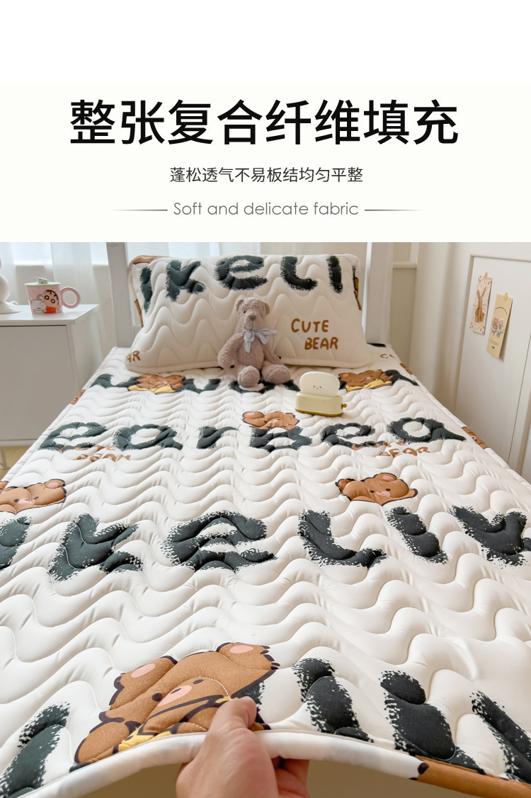 (总)希廷顿 2026新款印花夹棉防水床垫学生款,小恐龙,梦幻森林,小煤球,太空人,luck熊,萌宠狗,马上暴富,草莓熊,星星犬,熊本熊,熊猫攀竹,云之恋