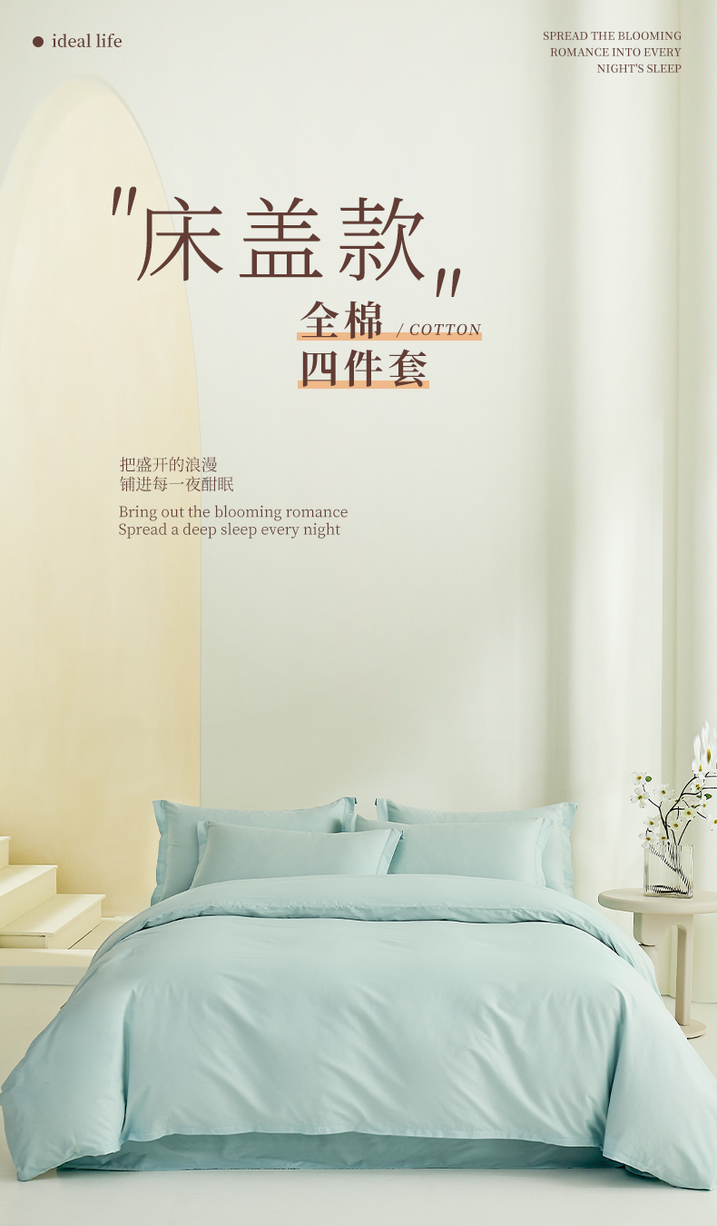 当前位置: 91家纺网 > 商品网购 > 床品套件 > 四件套 > 全棉普通四件套 > 元元家居(元元被业) 2026新款全棉纯棉13372床盖款四件套-纯色款 天梦蓝
