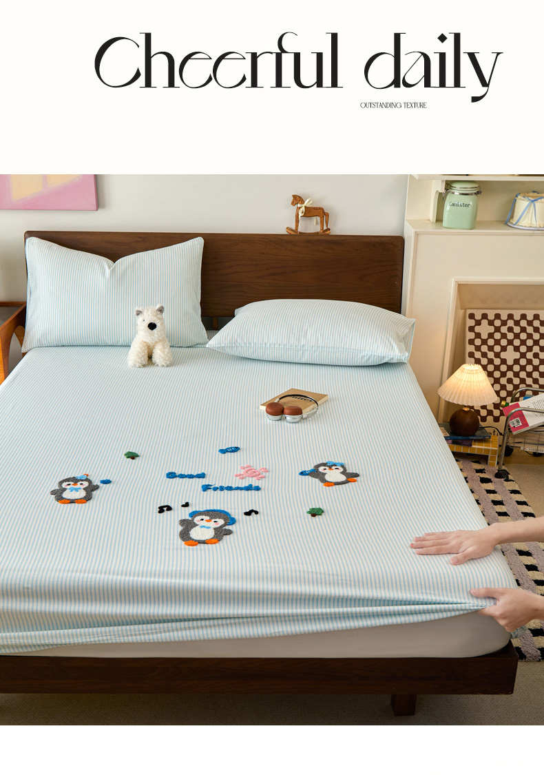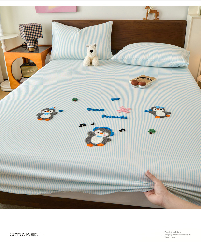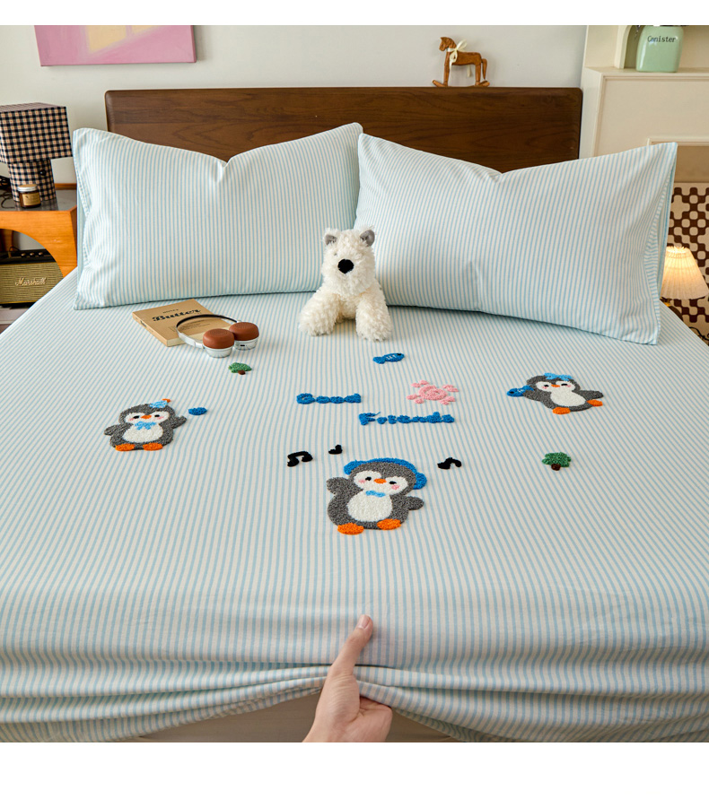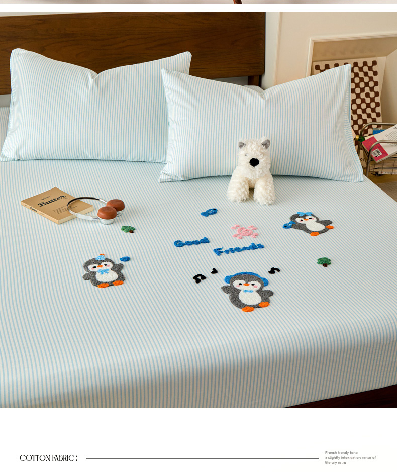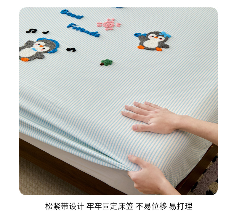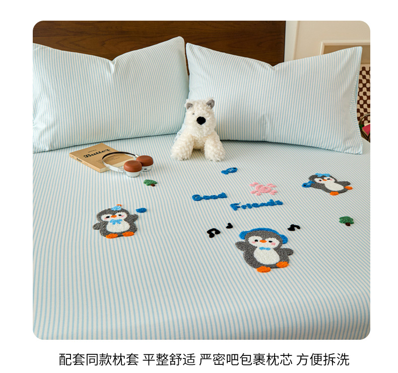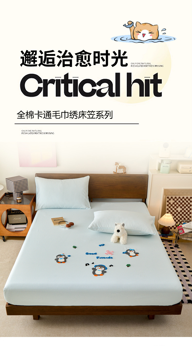 倾慕家纺 2026新款A类全棉毛巾绣系列单床笠 床笠欢乐企鹅
