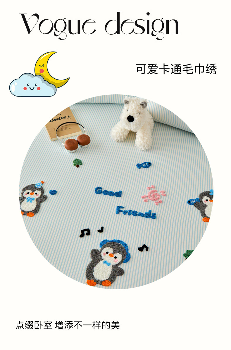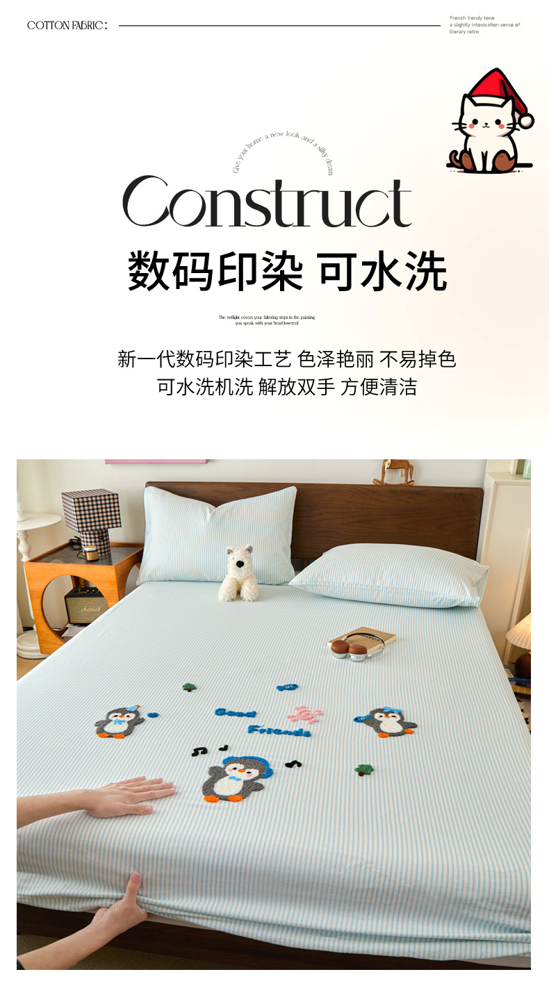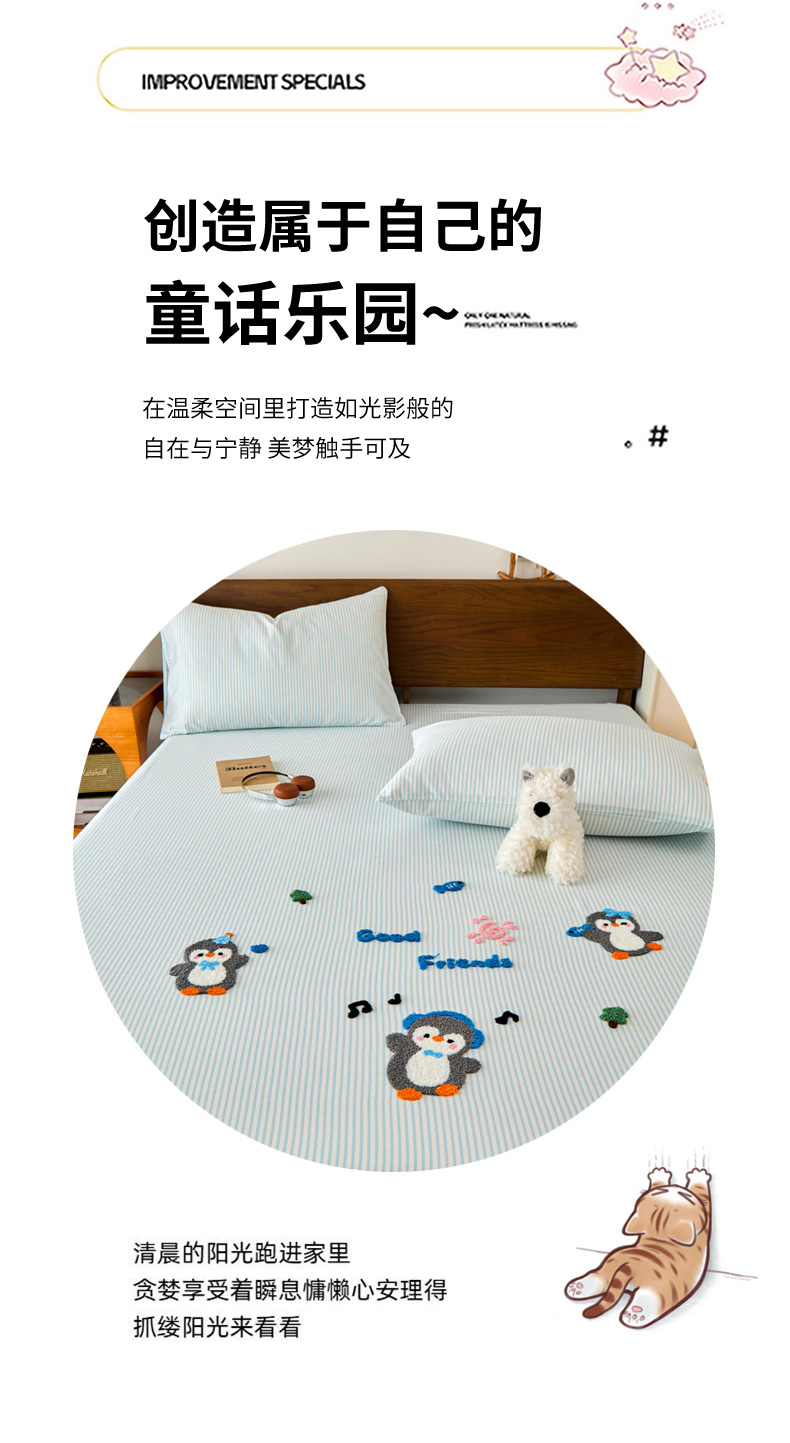 • 91家纺网 家纺一手货源 找家纺 倾慕家纺 2026新款A类全棉毛巾绣系列单床笠 床笠欢乐企鹅