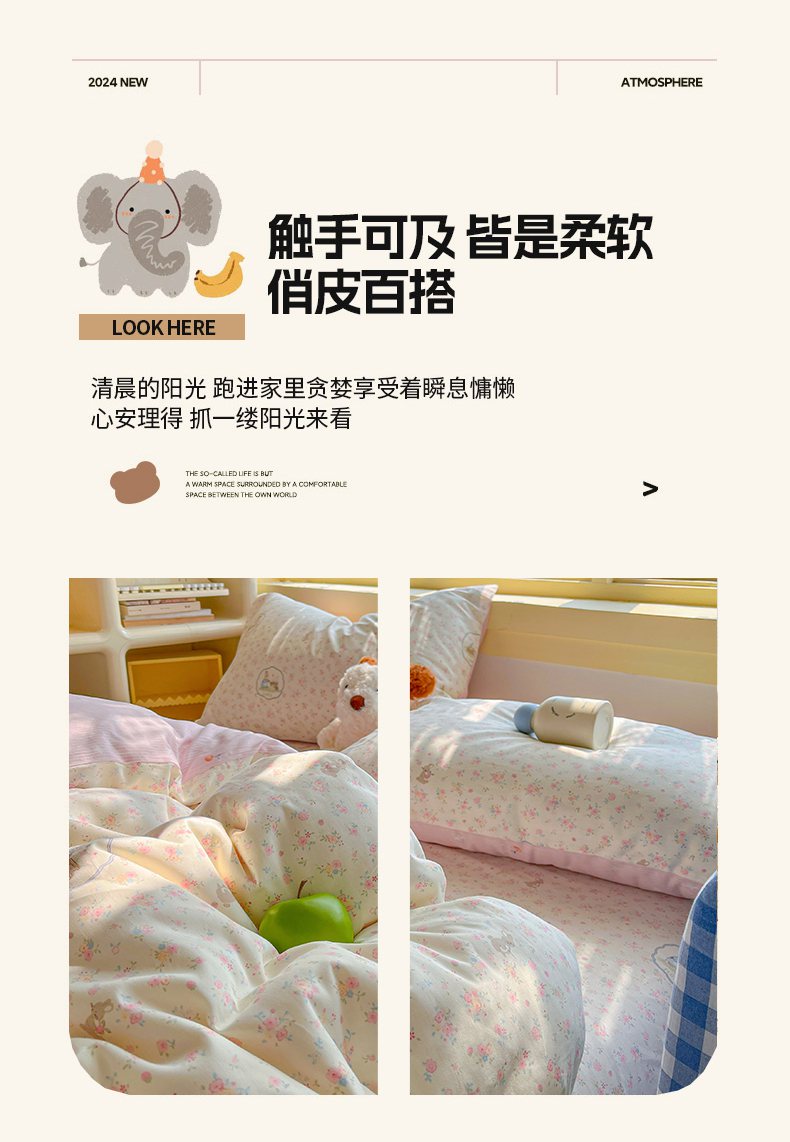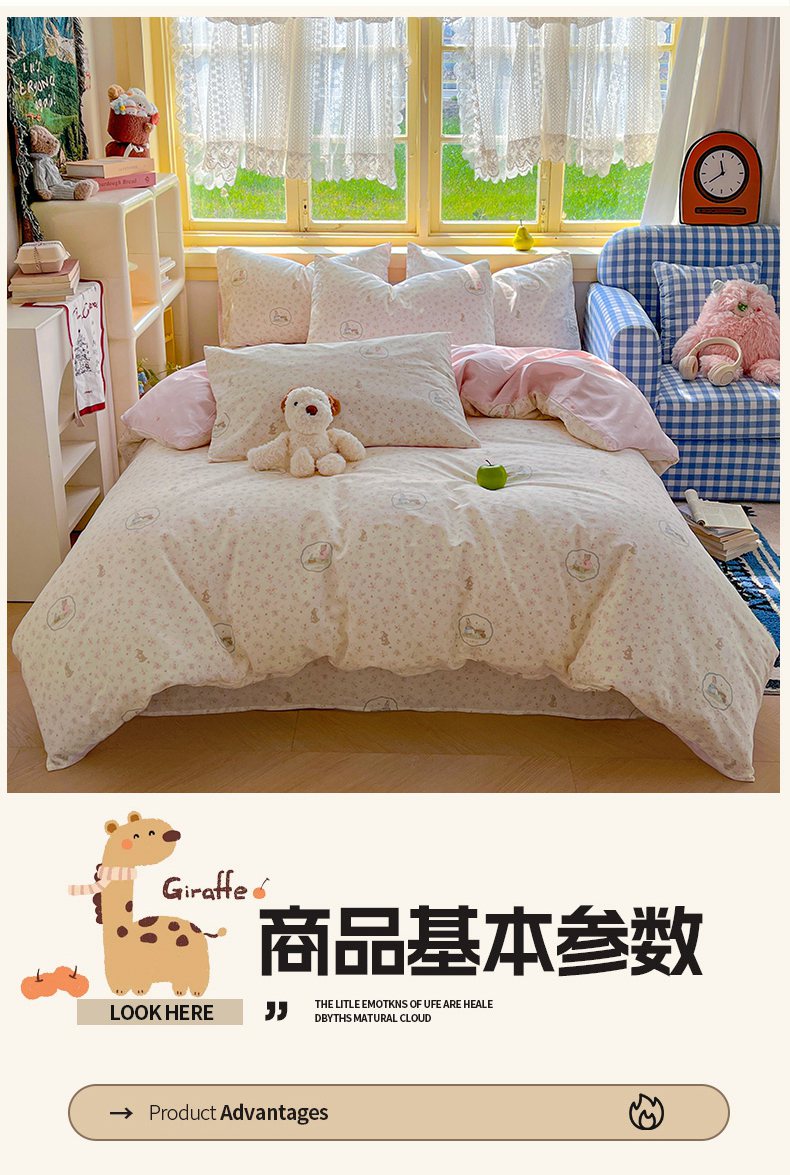 当前位置: 91家纺网 > 商品网购 > 床品套件 > 四件套 > 全棉普通四件套 > 简约家纺 2026新款全棉斜纹12868四件套系列 粉色花园兔-粉