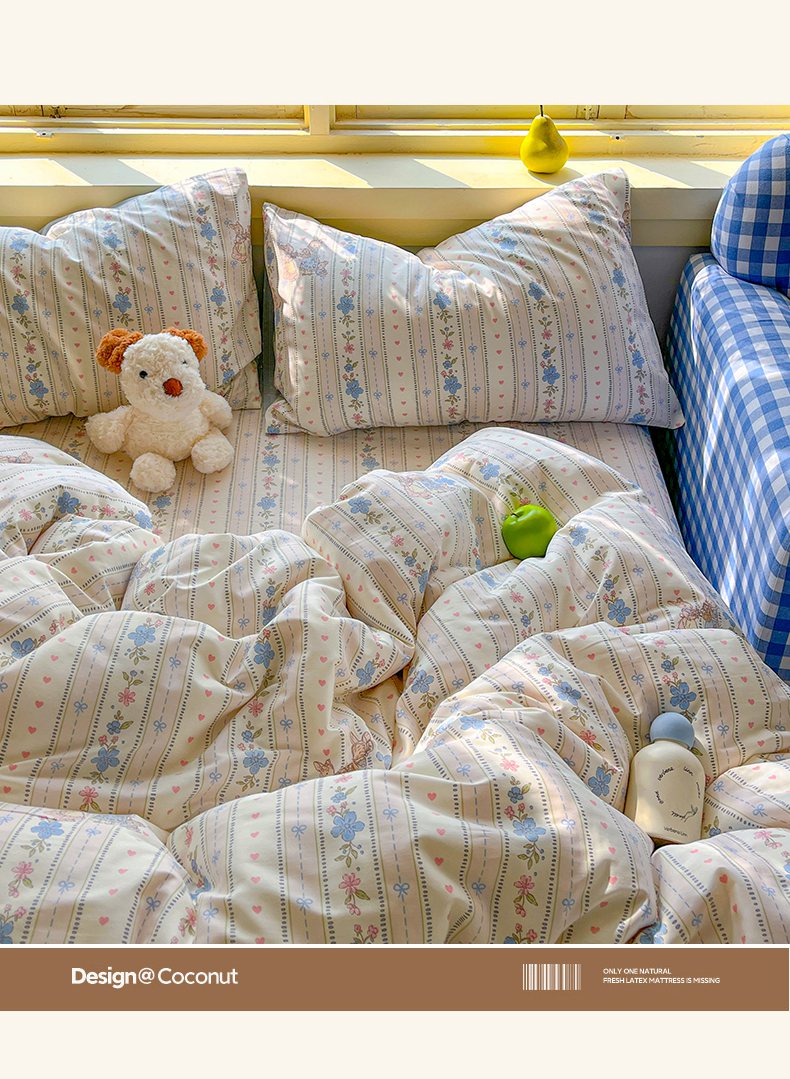 商品名称:简约家纺 2026新款全棉斜纹12868四件套单床单系列 蓝茵小兔