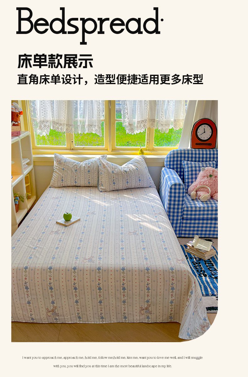 简约家纺 2026新款全棉斜纹12868四件套单床单系列 蓝茵小兔