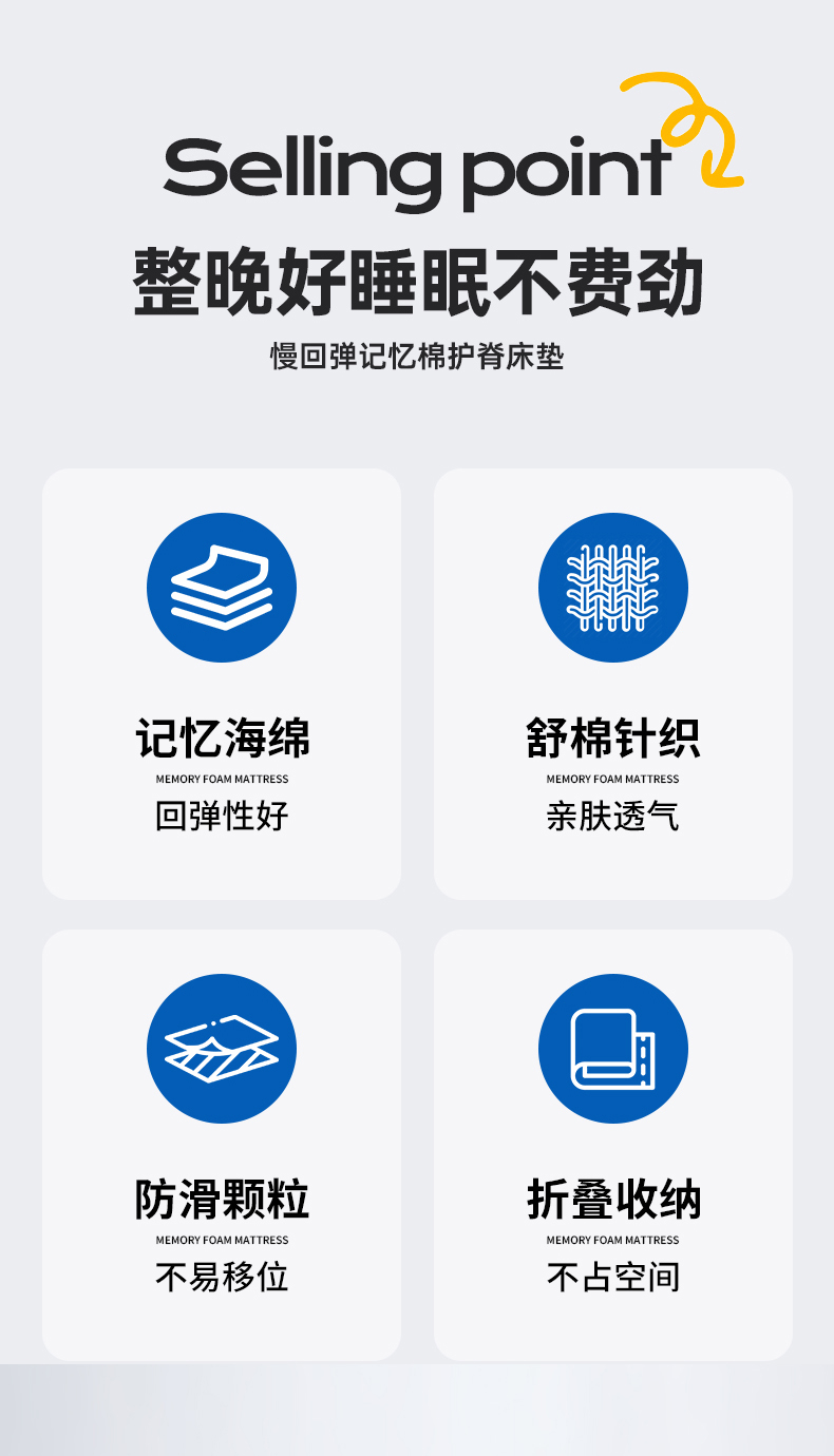 (总)富旺家纺 2026春夏新款零压力记忆棉床垫,纯白,浅灰