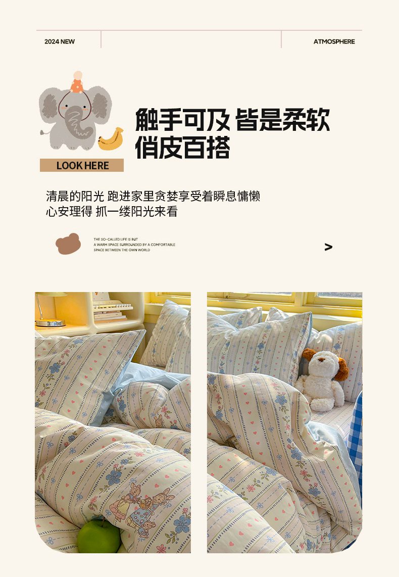 (总)简约家纺 2026新款全棉印花学生宿舍三件套系列,费尔岛小狗,粉色花园兔-粉,歌尔-粉,格雅,故事小黄花,花满情,橘子格,可爱萌犬,蓝茵小兔,木马心愿,史努比花海,恬淡小花,晚风私语,维西兔,小奶兔,星小象-米,星语星愿,雅柔,颜诺,怡花