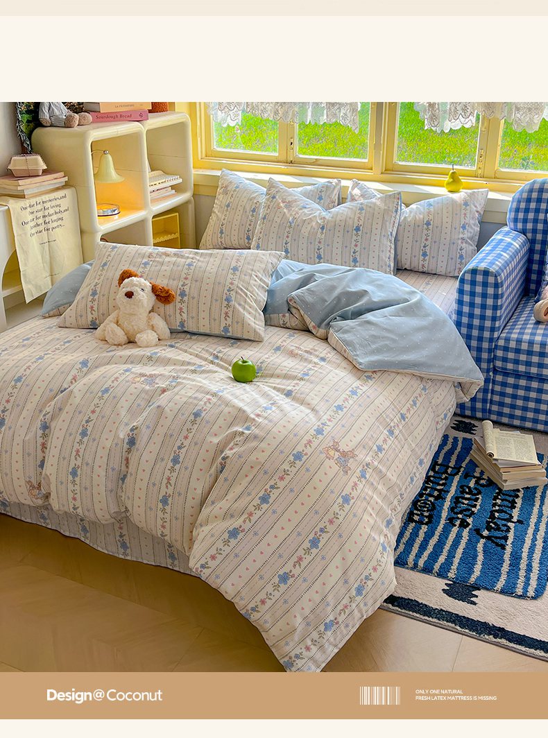 商品名称:简约家纺 2026新款全棉斜纹12868床笠系列 蓝茵小兔