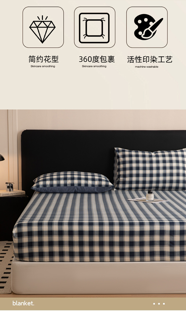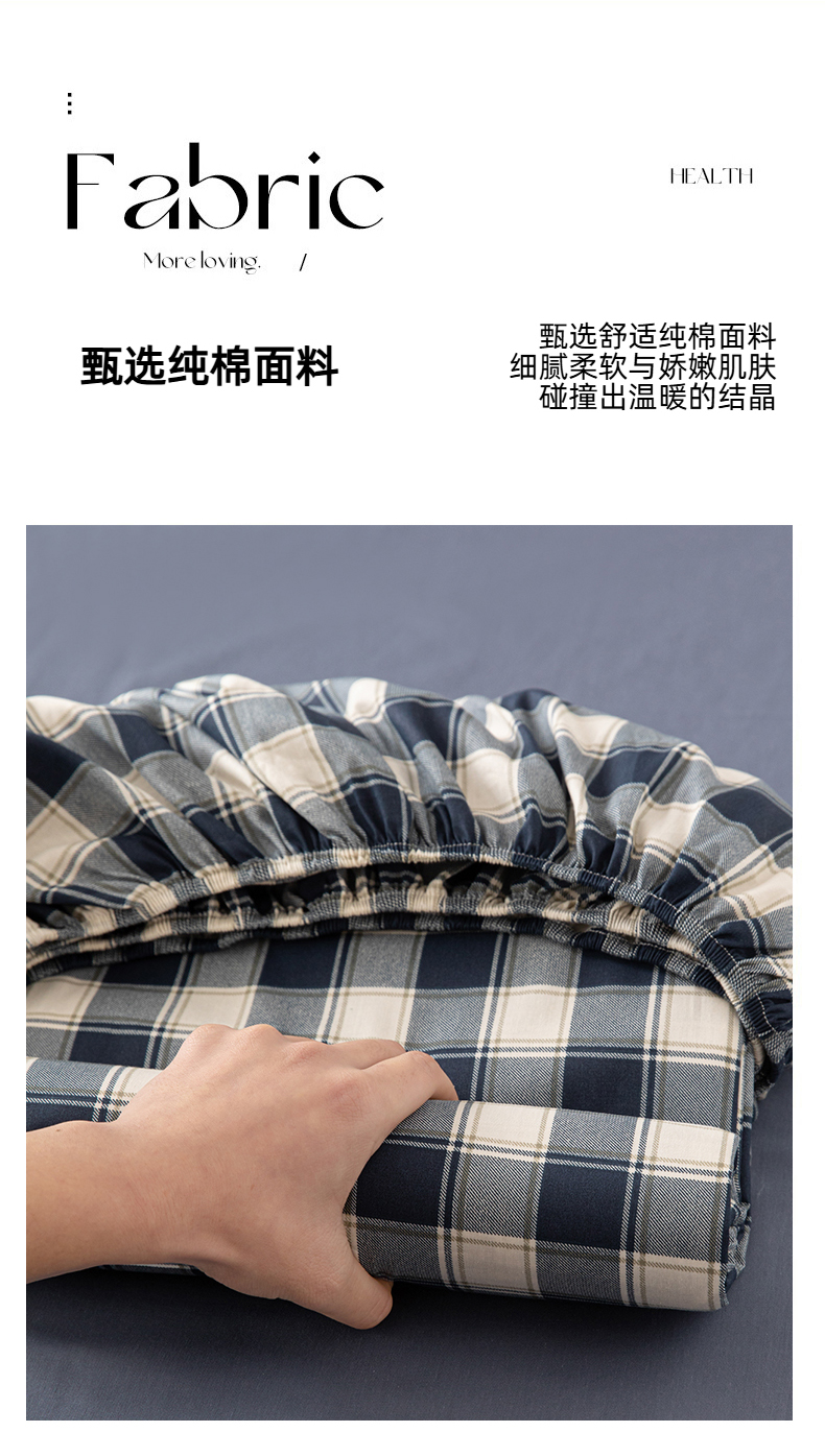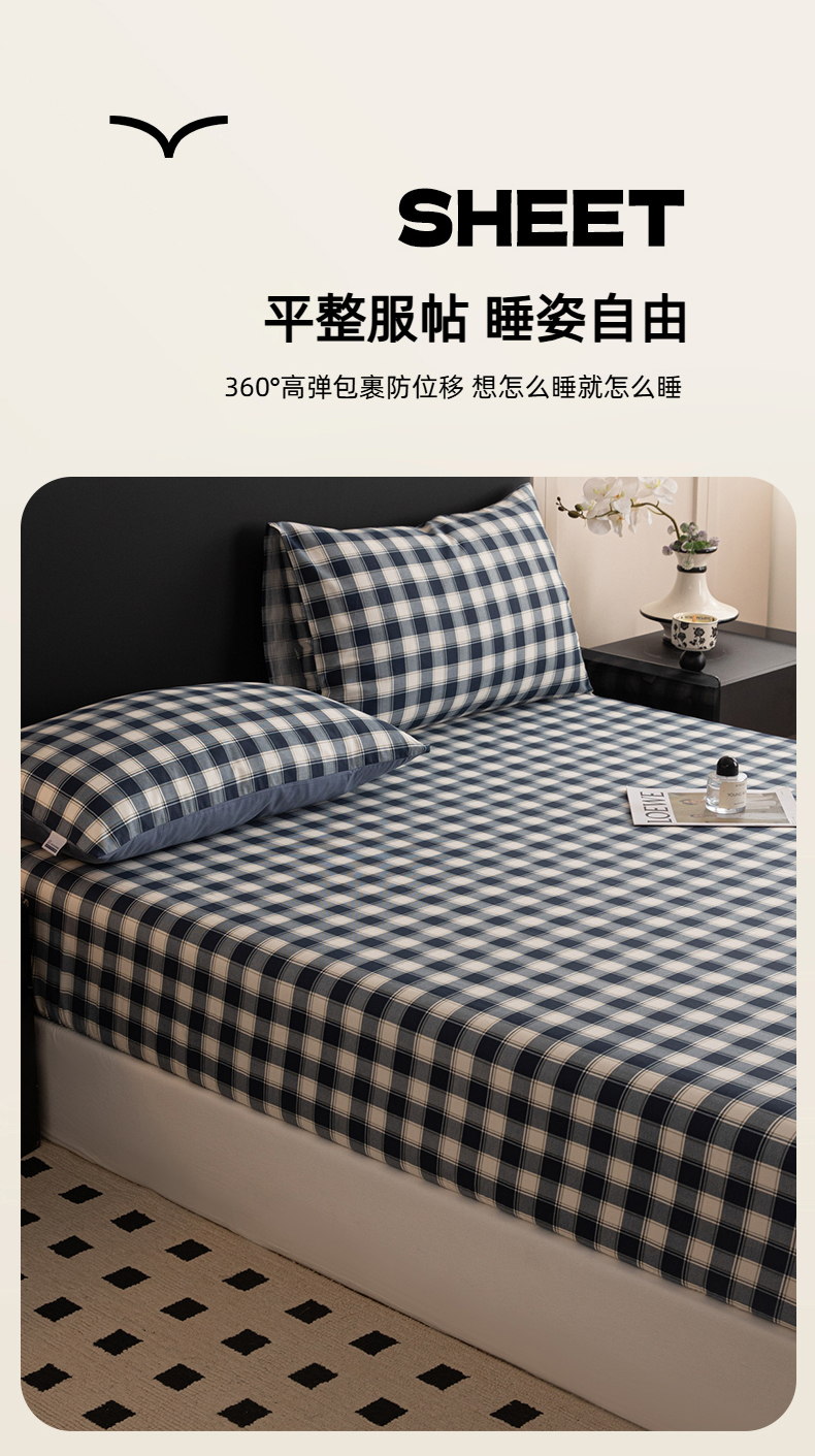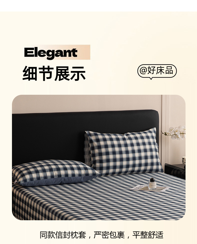 商品名称:女子家纺 2026新款40支13070全棉简约格子系列A版床笠 藏青学院