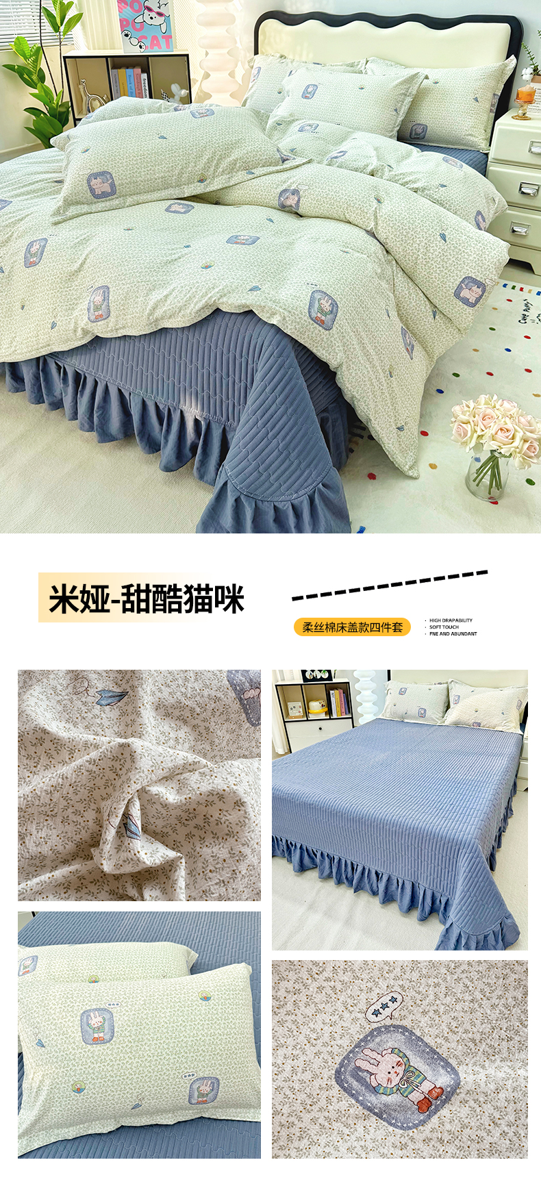 当前位置: 91家纺网 > 商品网购 > 床品套件 > 四件套 > 其它四件套 > 九诺家纺 2026新款丝柔棉皱皱纱花边床盖四件套 米娅-圣代甜猫粉