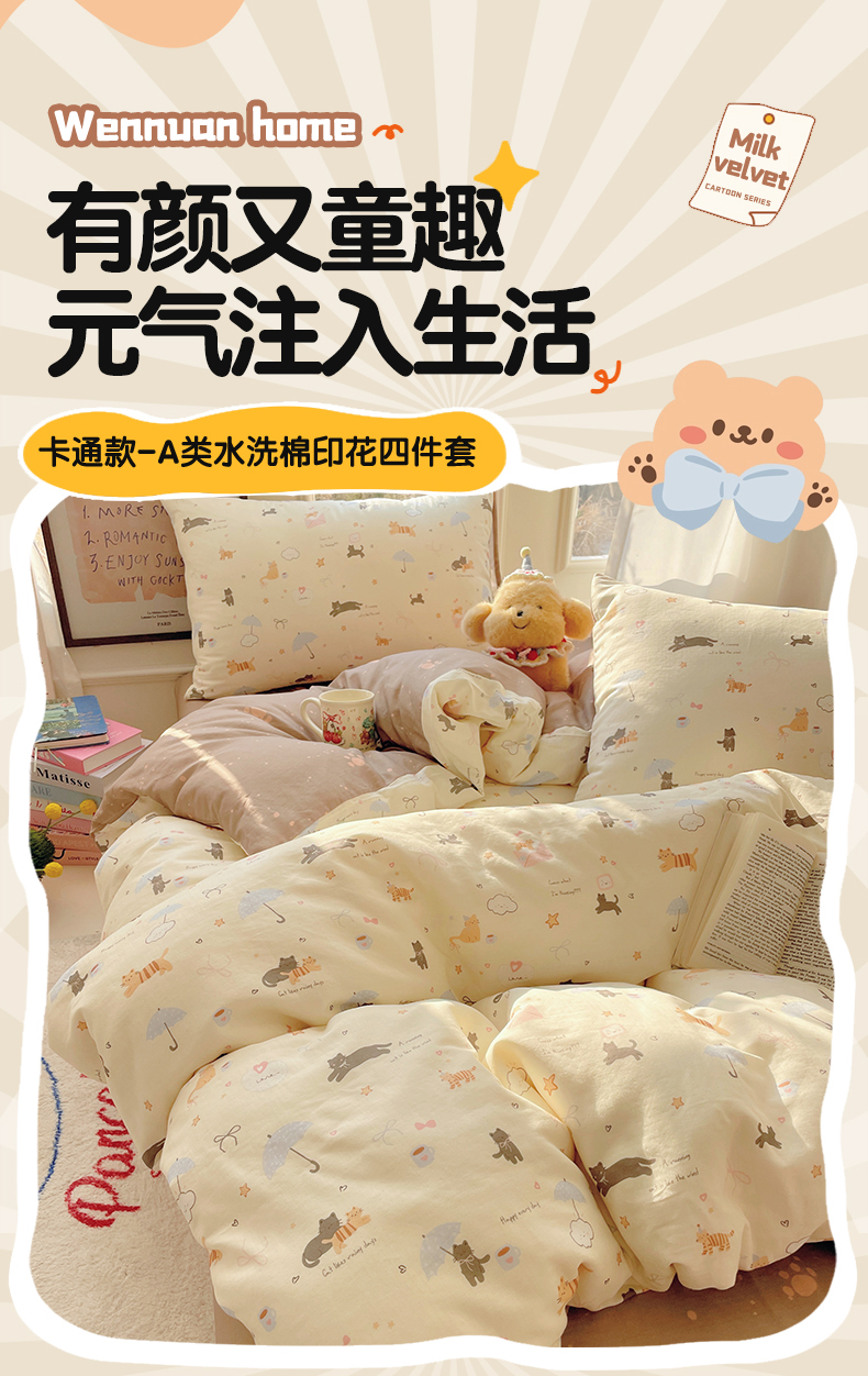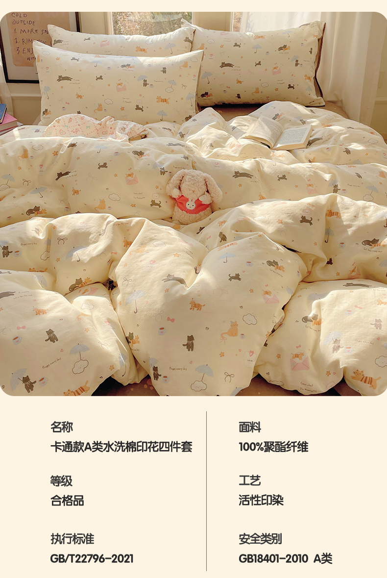 当前位置: 91家纺网 > 商品网购 > 床品套件 > 四件套 > 水洗棉四件套 > 盛秋家纺 2026新款卡通款A类水洗棉印花四件套 满山猫+猫爪