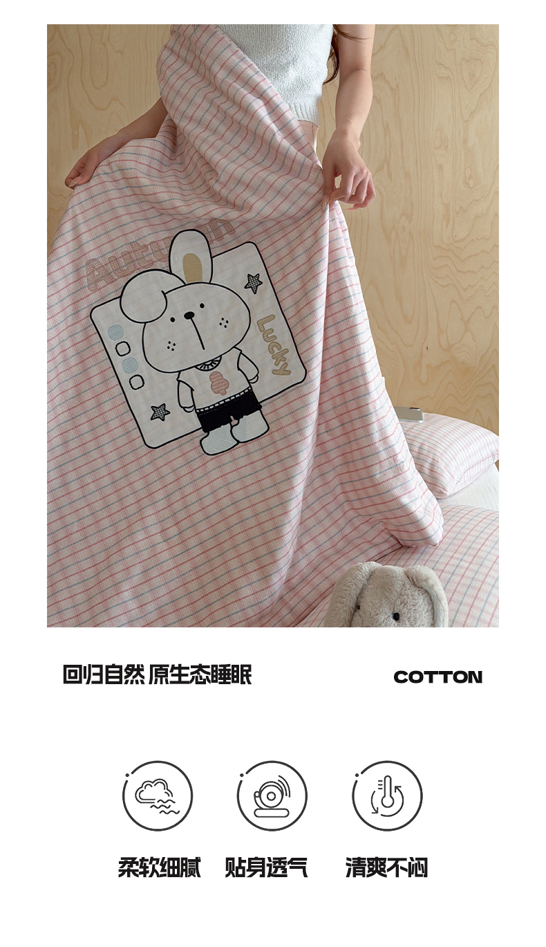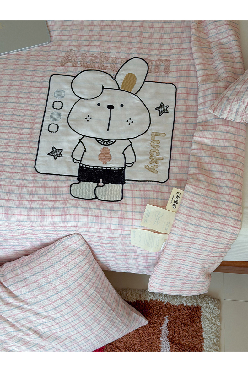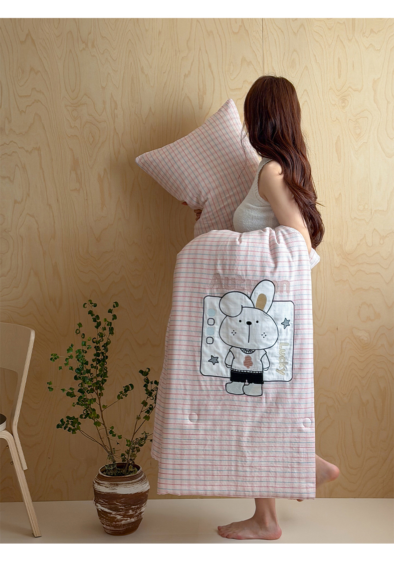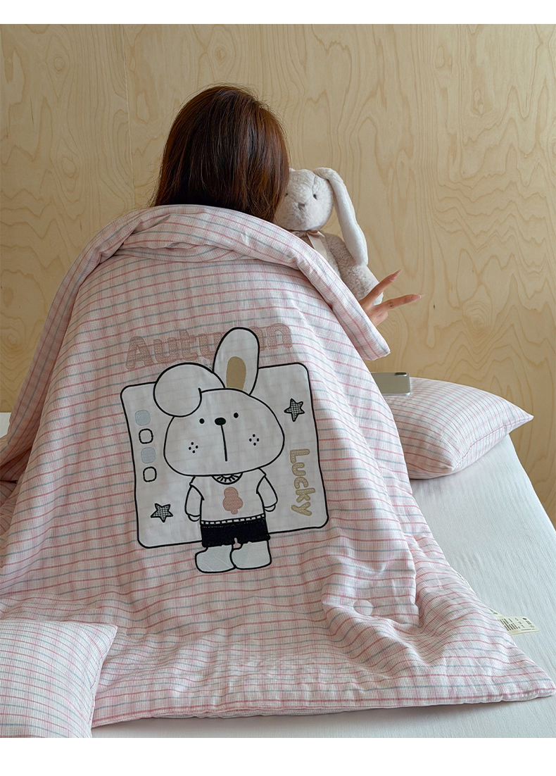 商品名称:一加一 2026新款全棉纯棉双层纱贴布绣大豆夏被夏凉被空调被-格格乐园 粉格小兔