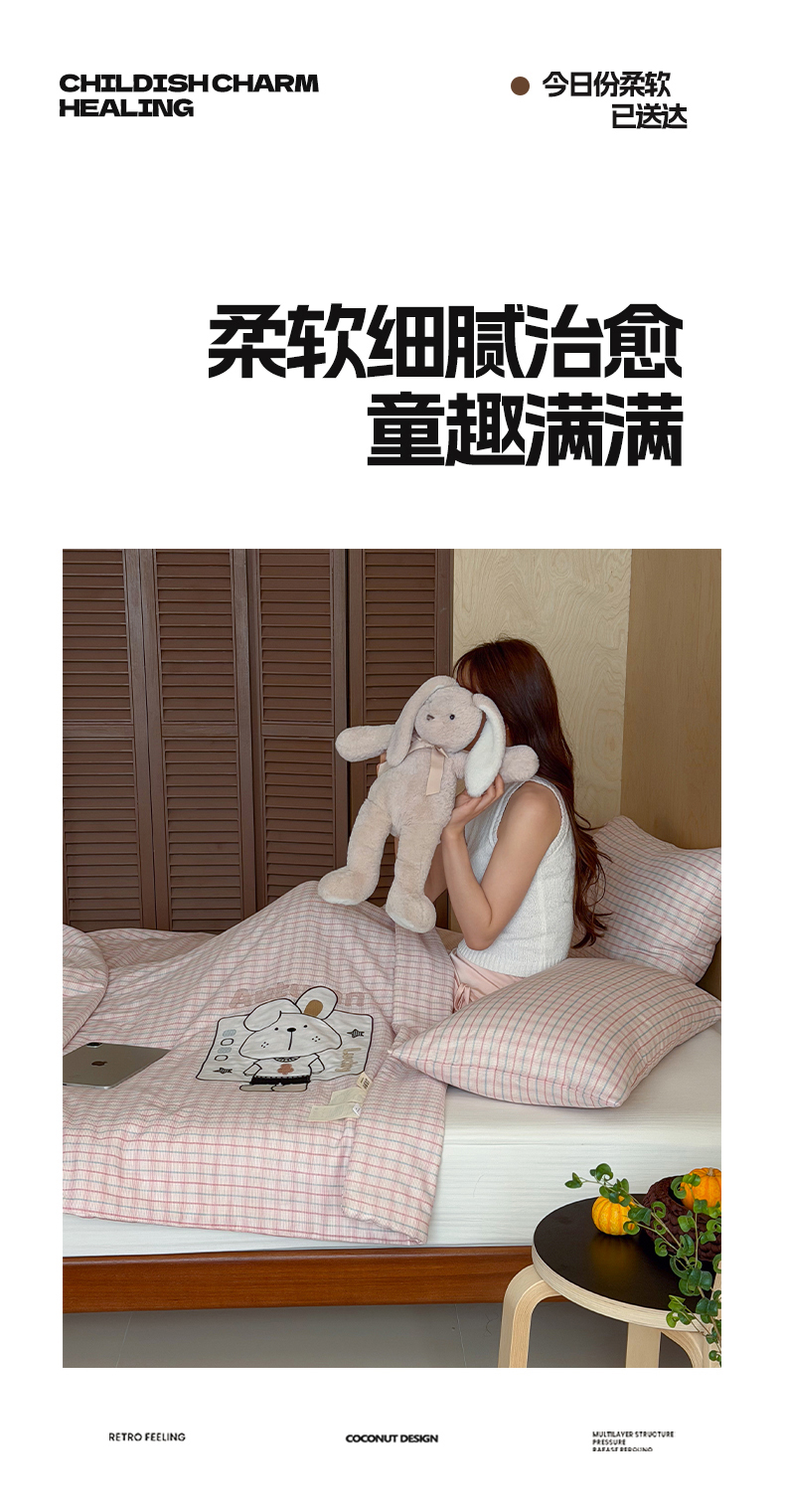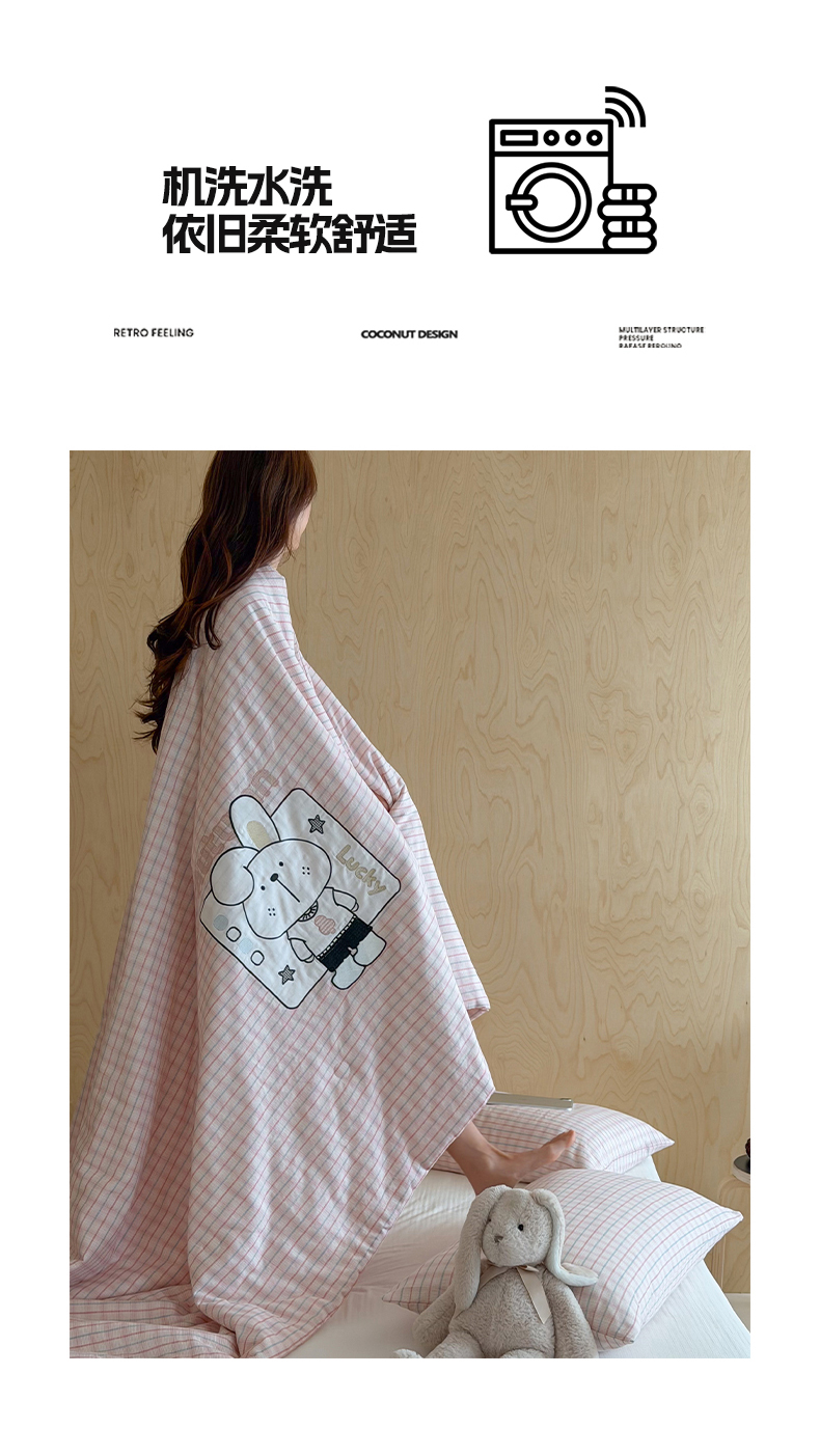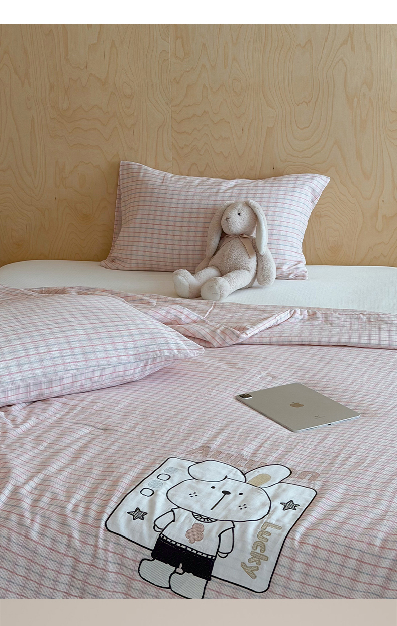商品名称:一加一 2026新款全棉纯棉双层纱贴布绣大豆夏被夏凉被空调被-格格乐园 粉格小兔