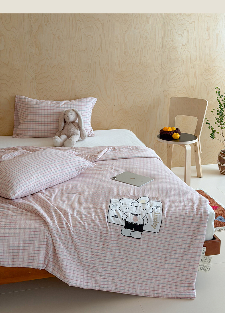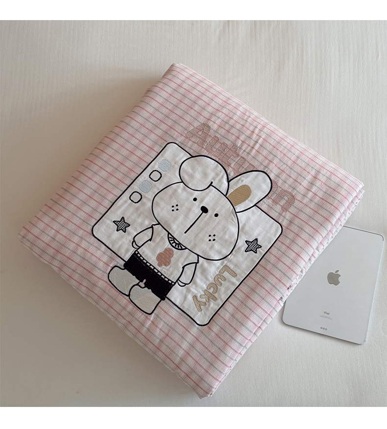 一加一 2026新款全棉纯棉双层纱贴布绣大豆夏被夏凉被空调被-格格乐园 粉格小兔